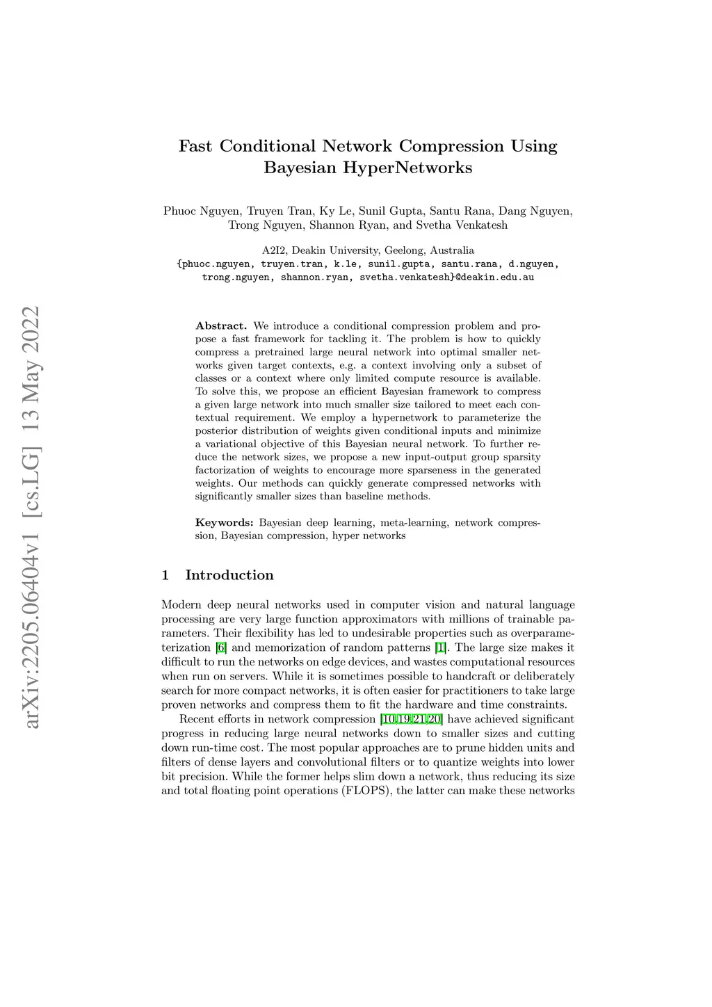 Fast Conditional Network Compression Using Bayesian HyperNetworks