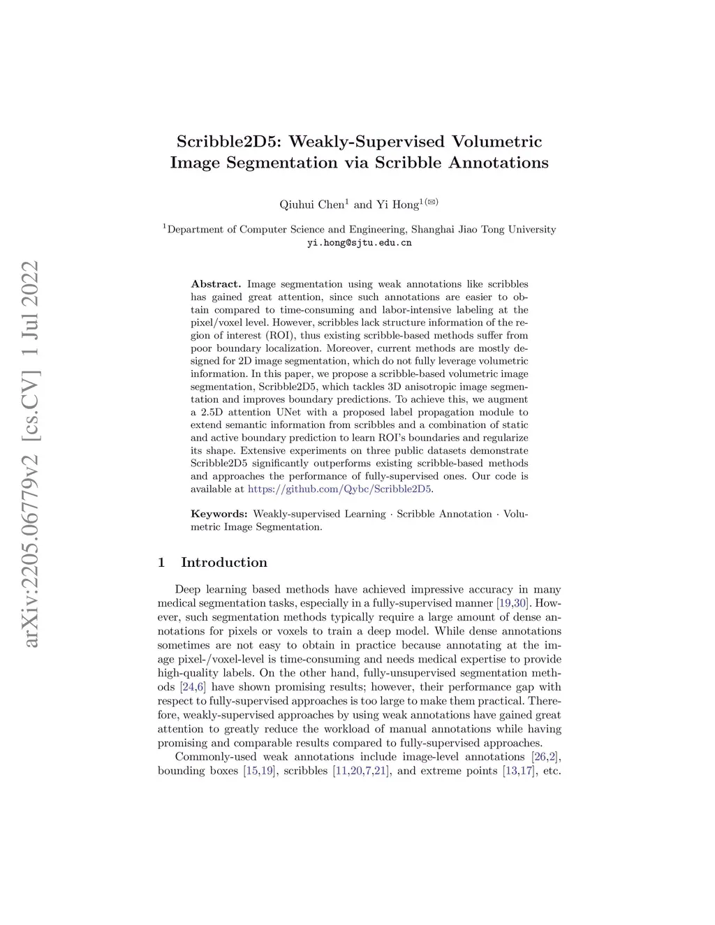 Scribble2D5: Weakly-Supervised Volumetric Image Segmentation via