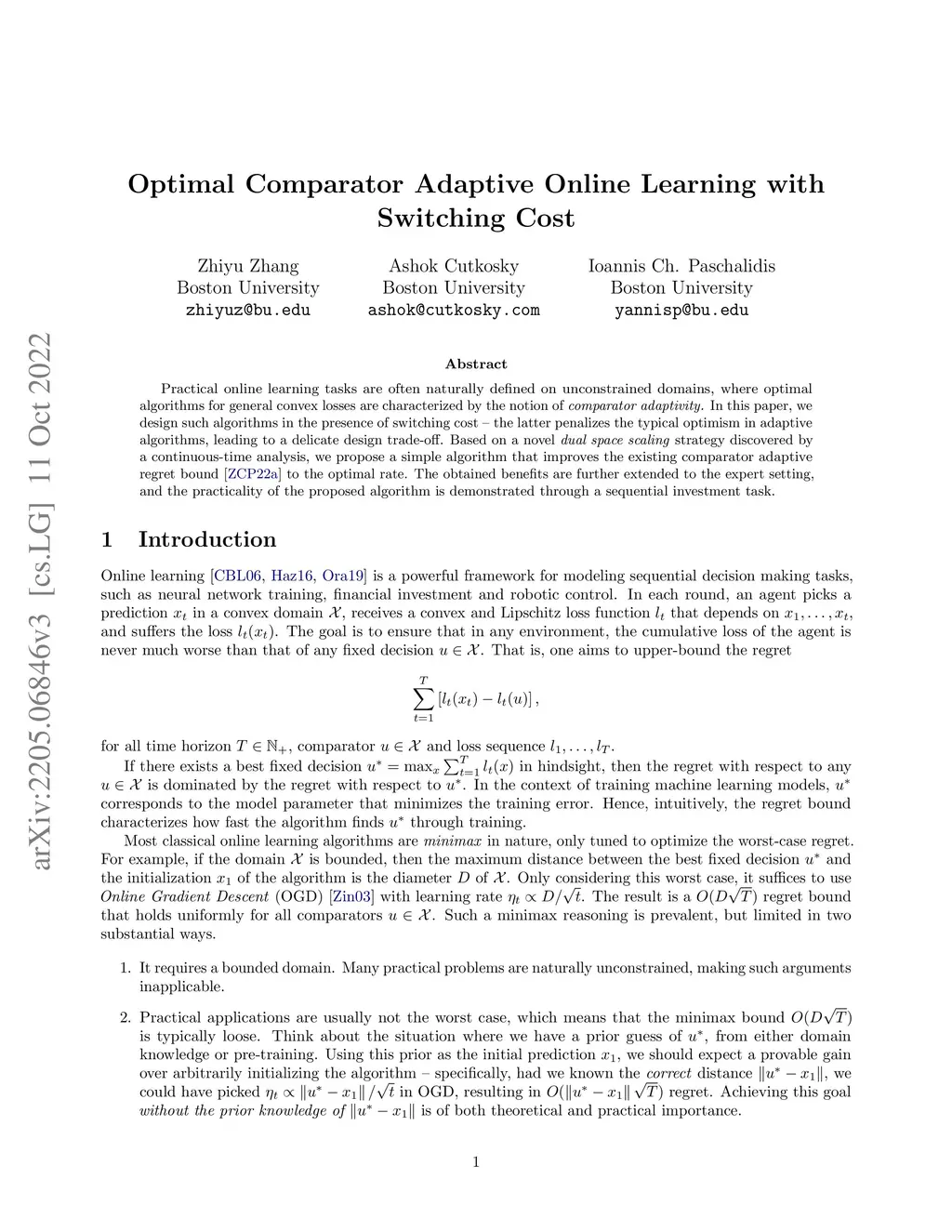 Optimal Comparator Adaptive Online Learning with Switching Cost