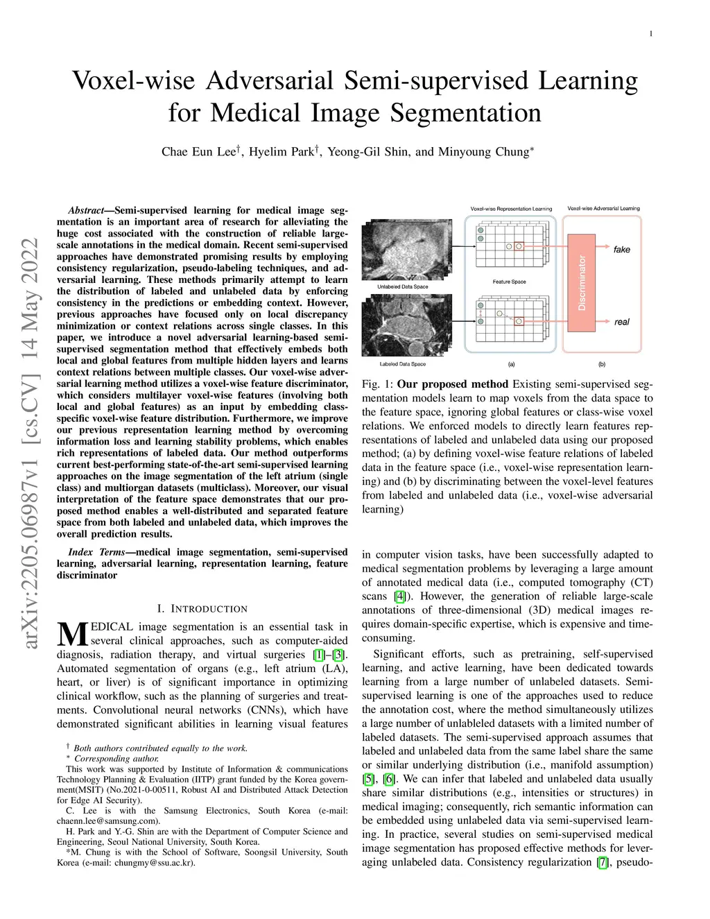 Voxel-wise Adversarial Semi-supervised Learning for Medical Image