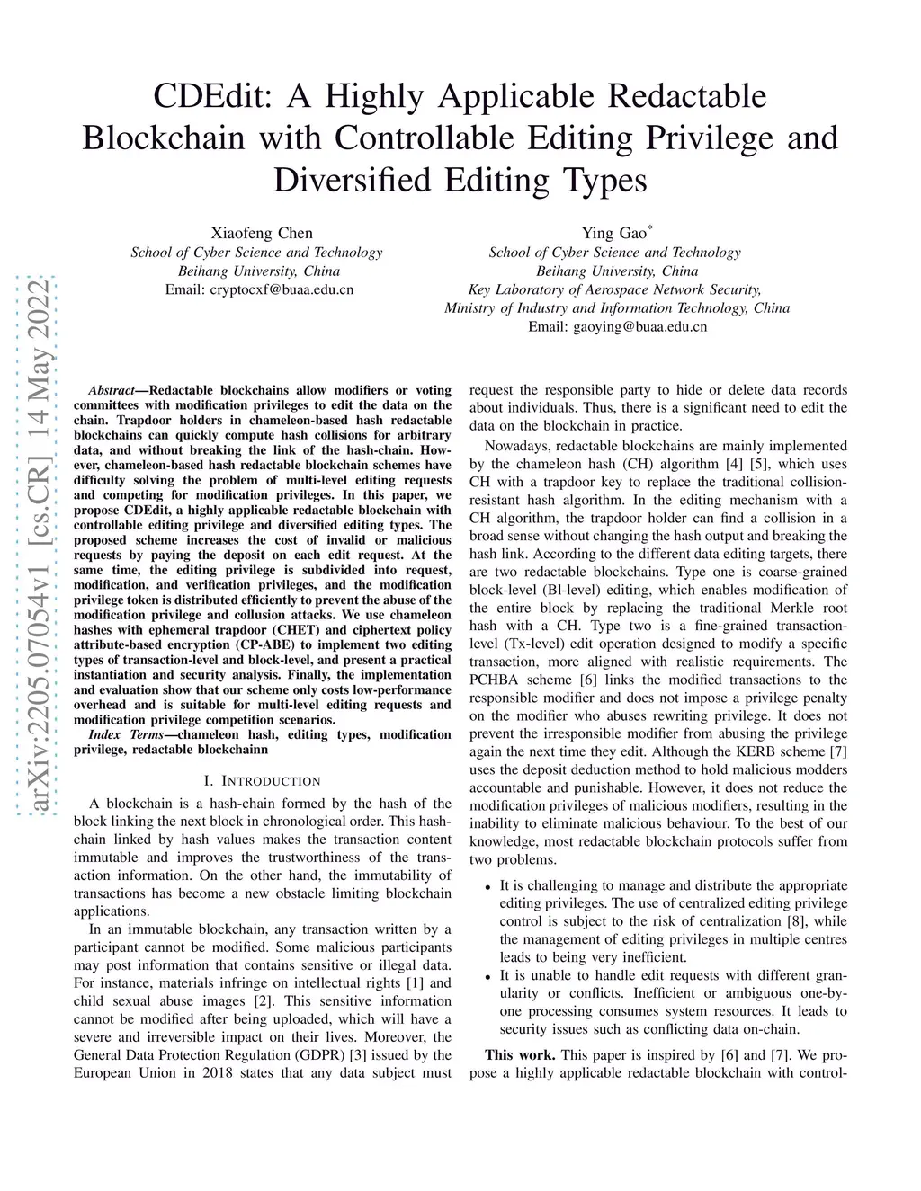 CDEdit: A Highly Applicable Redactable Blockchain with Controllable
