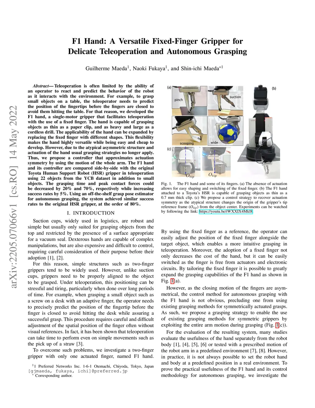 F1 Hand: A Versatile Fixed-Finger Gripper for Delicate Teleoperation and