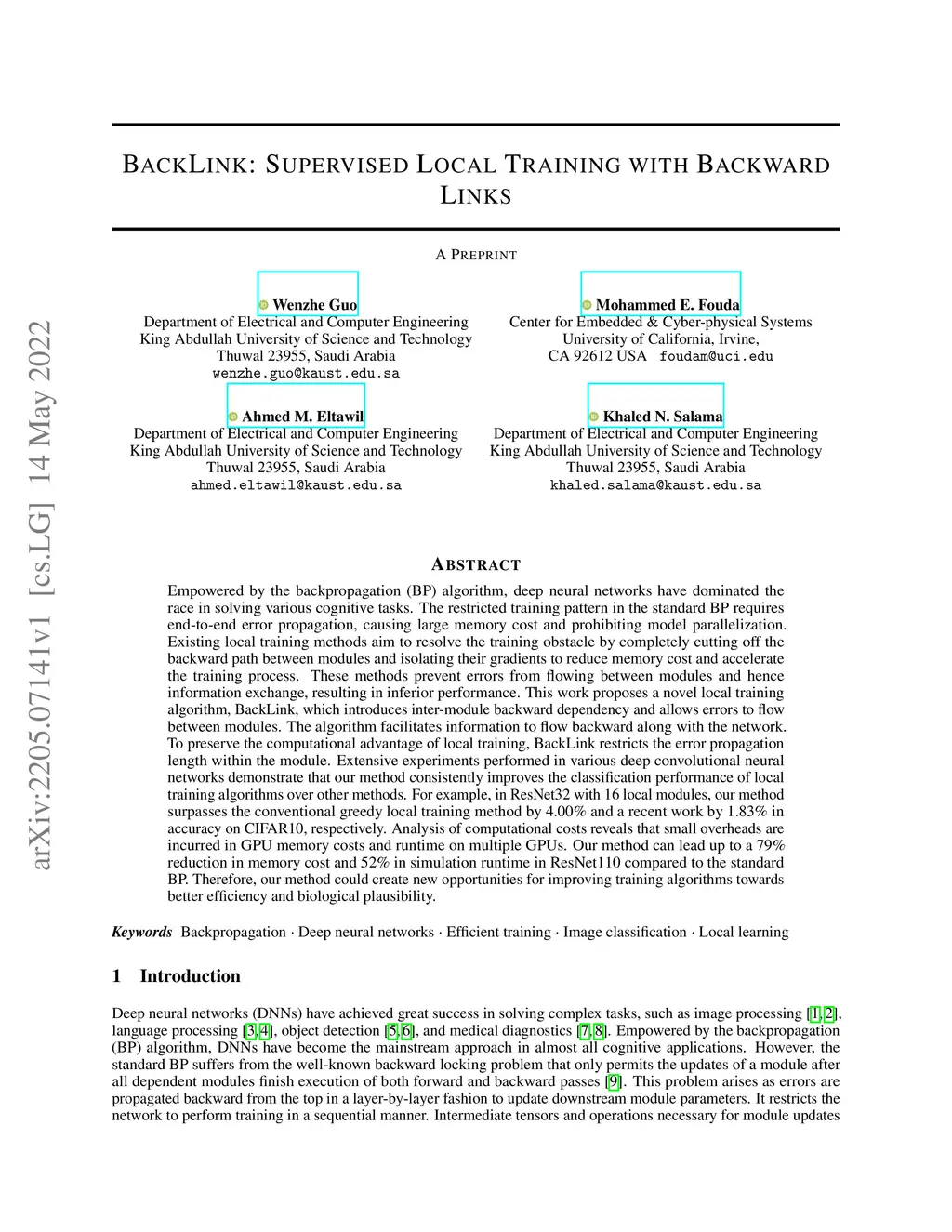 Empowered by the backpropagation (BP) algorithm, deep neural networks have dominated the race in solving various cognitive tasks. The restricted training pattern in the standard BP requires end-to-end error propagation, causing large memory cost and prohibiting model parallelization. Existing local training methods aim to resolve the training obstacle by completely cutting off the backward path between modules and isolating their gradients to reduce memory cost and accelerate the training process. These methods prevent errors from flowing between modules and hence information exchange, resulting in inferior performance. This work proposes a novel local training algorithm, BackLink, which introduces inter-module backward dependency and allows errors to flow between modules. The algorithm facilitates information to flow backward along with the network. To preserve the computational advantage of local training, BackLink restricts the error propagation length within the module. Extensive experiments performed in various deep convolutional neural networks demonstrate that our method consistently improves the classification performance of local training algorithms over other methods. For example, in ResNet32 with 16 local modules, our method surpasses the conventional greedy local training method by 4.00\% and a recent work by 1.83\% in accuracy on CIFAR10, respectively. Analysis of computational costs reveals that small overheads are incurred in GPU memory costs and runtime on multiple GPUs. Our method can lead up to a 79\% reduction in memory cost and 52\% in simulation runtime in ResNet110 compared to the standard BP. Therefore, our method could create new opportunities for improving training algorithms towards better efficiency and biological plausibility.