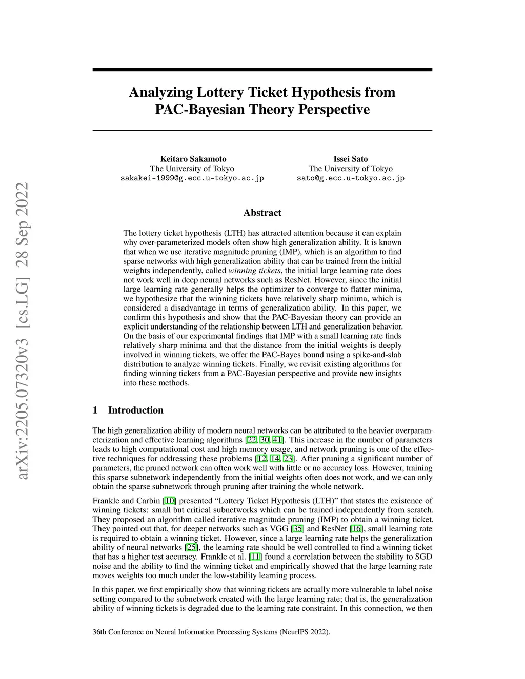 Analyzing Lottery Ticket Hypothesis from PAC-Bayesian Theory Perspective