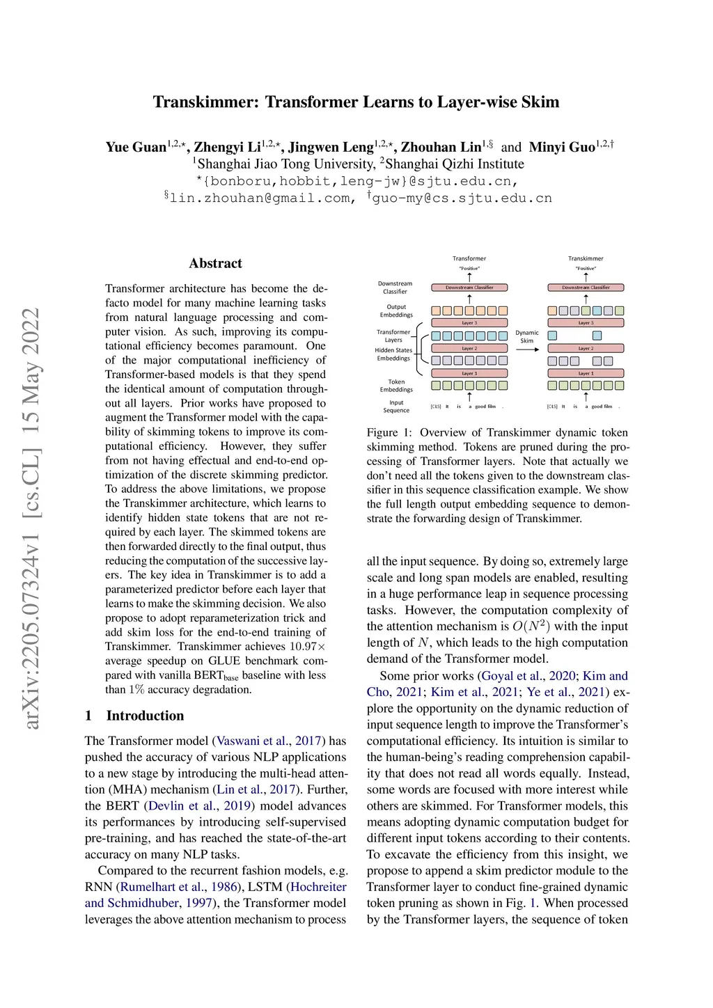 Transkimmer: Transformer Learns to Layer-wise Skim