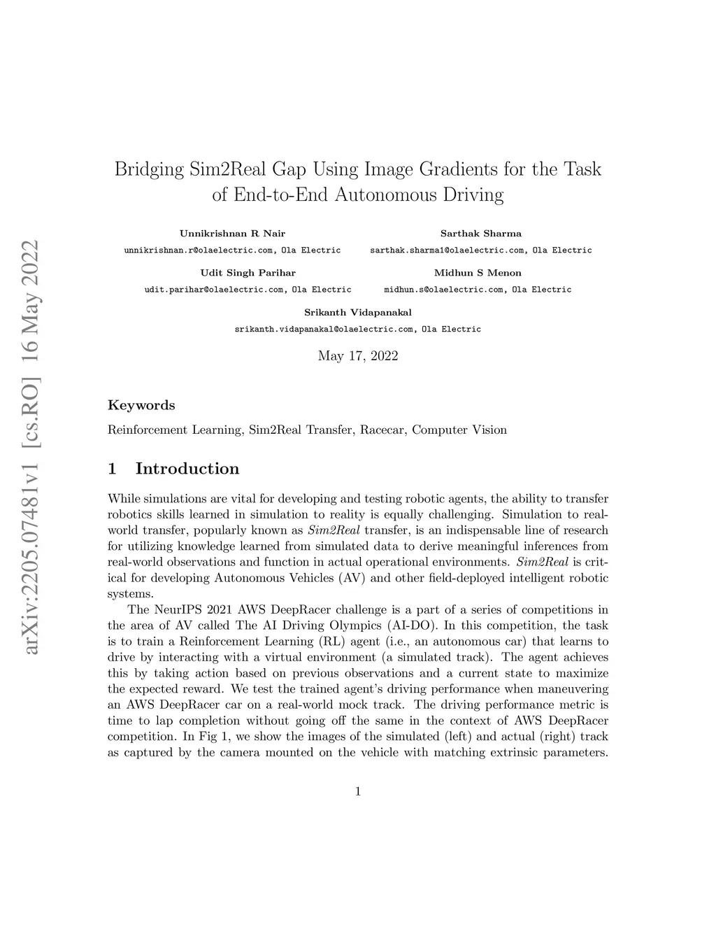 Bridging Sim2Real Gap Using Image Gradients for the Task of End-to-End