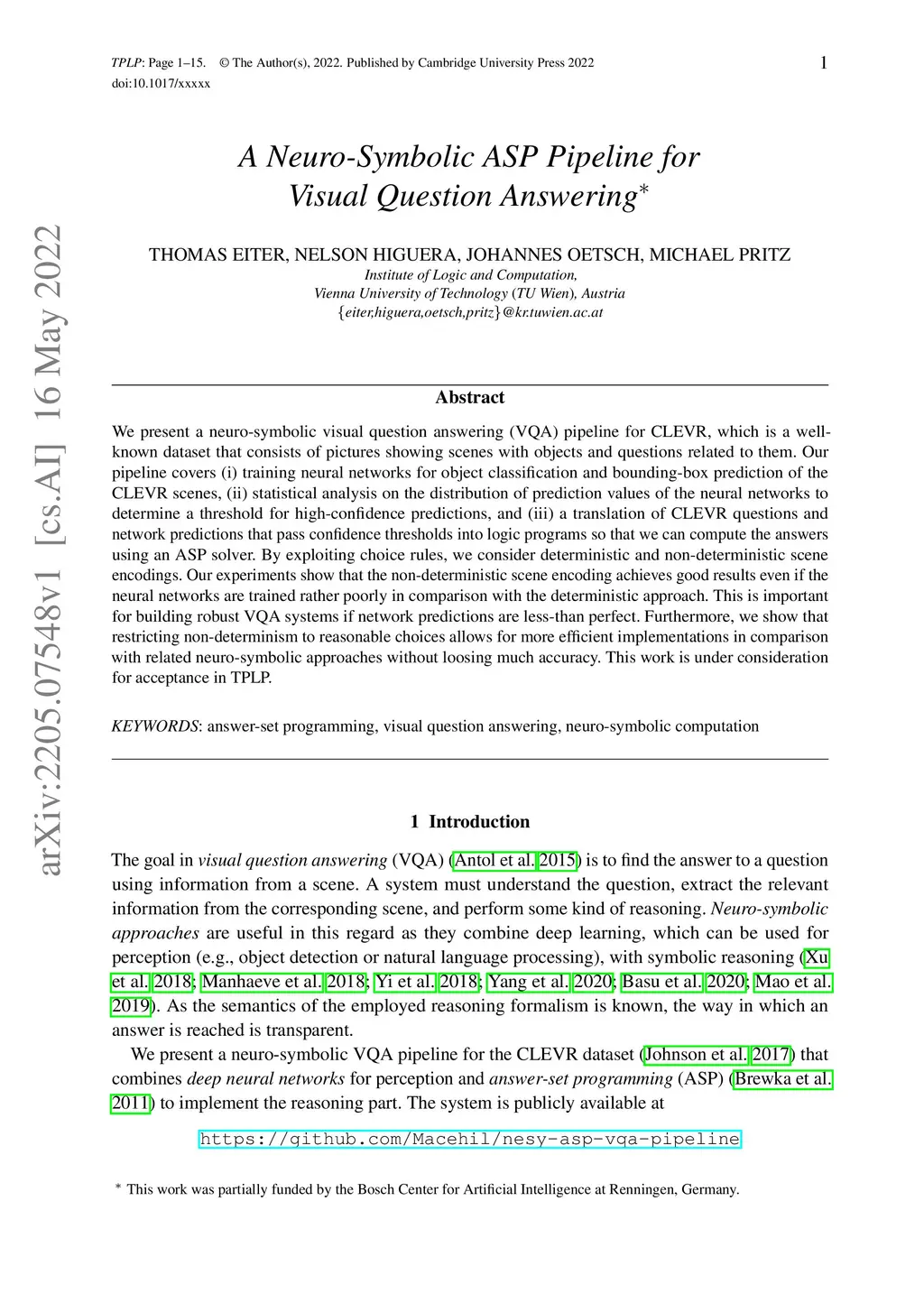A Neuro-Symbolic ASP Pipeline for Visual Question Answering