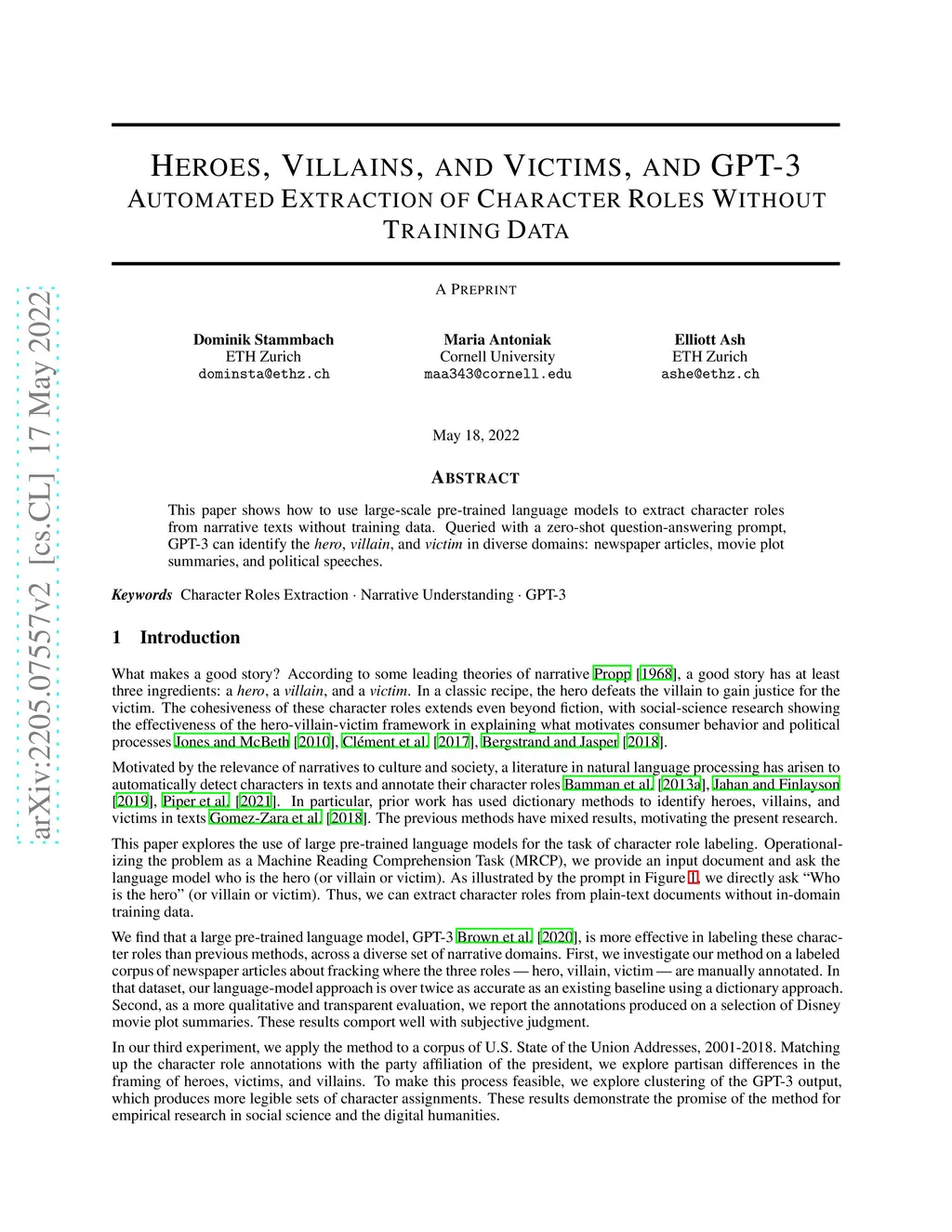 Heroes, Villains, and Victims, and GPT-3: Automated Extraction of