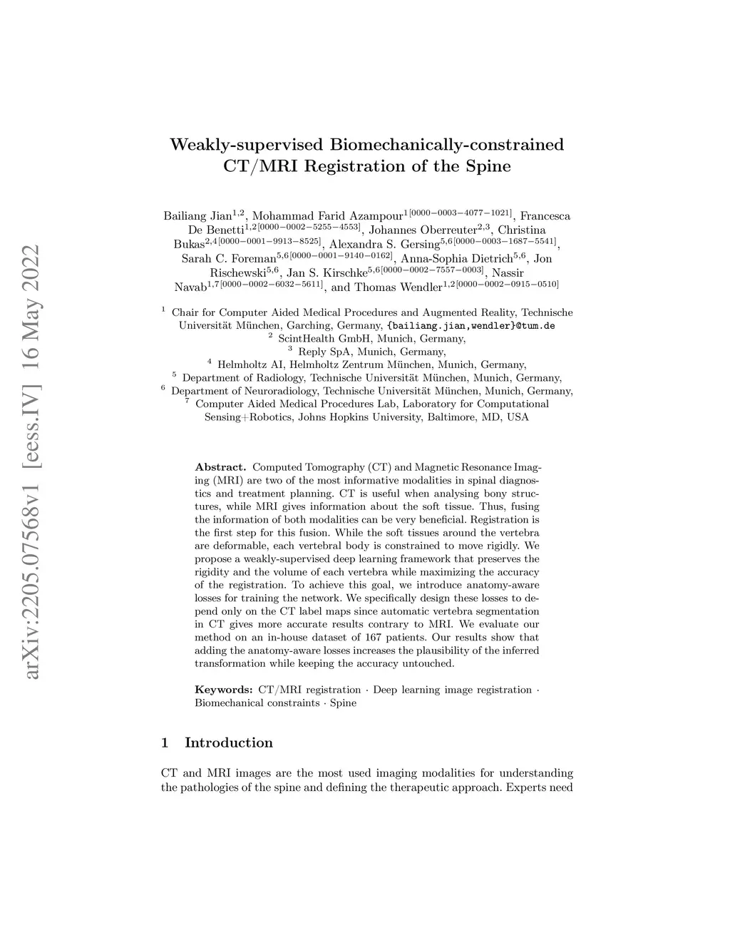 Weakly-supervised Biomechanically-constrained CT/MRI Registration of the