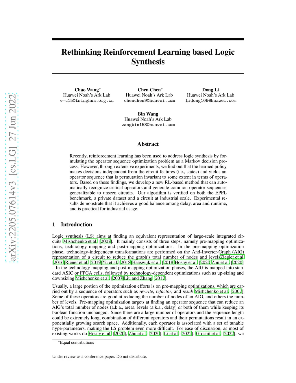 Recently, reinforcement learning has been used to address logic synthesis by formulating the operator sequence optimization problem as a Markov decision process. However, through extensive experiments, we find out that the learned policy makes decisions independent from the circuit features (i.e., states) and yields an operator sequence that is permutation invariant to some extent in terms of operators. Based on these findings, we develop a new RL-based method that can automatically recognize critical operators and generate common operator sequences generalizable to unseen circuits. Our algorithm is verified on both the EPFL benchmark, a private dataset and a circuit at industrial scale. Experimental results demonstrate that it achieves a good balance among delay, area and runtime, and is practical for industrial usage.