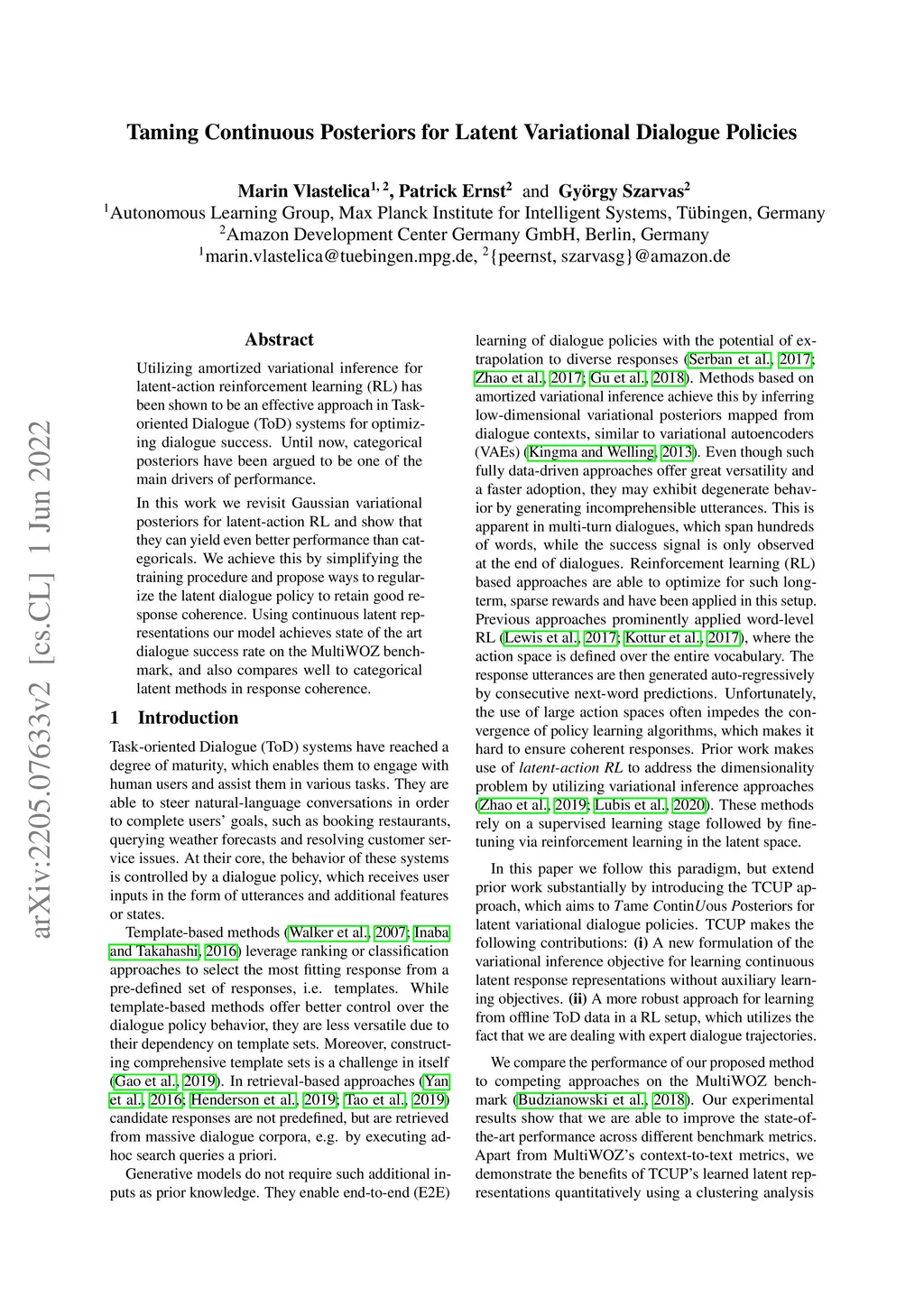 Taming Continuous Posteriors for Latent Variational Dialogue Policies