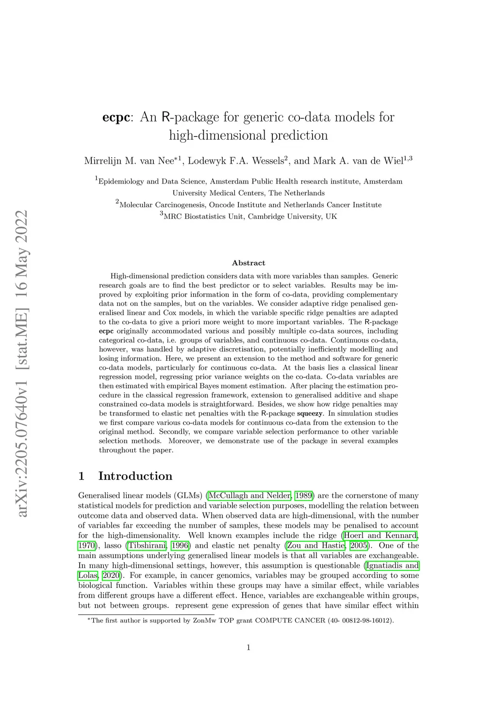 ecpc: An R-package for generic co-data models for high-dimensional