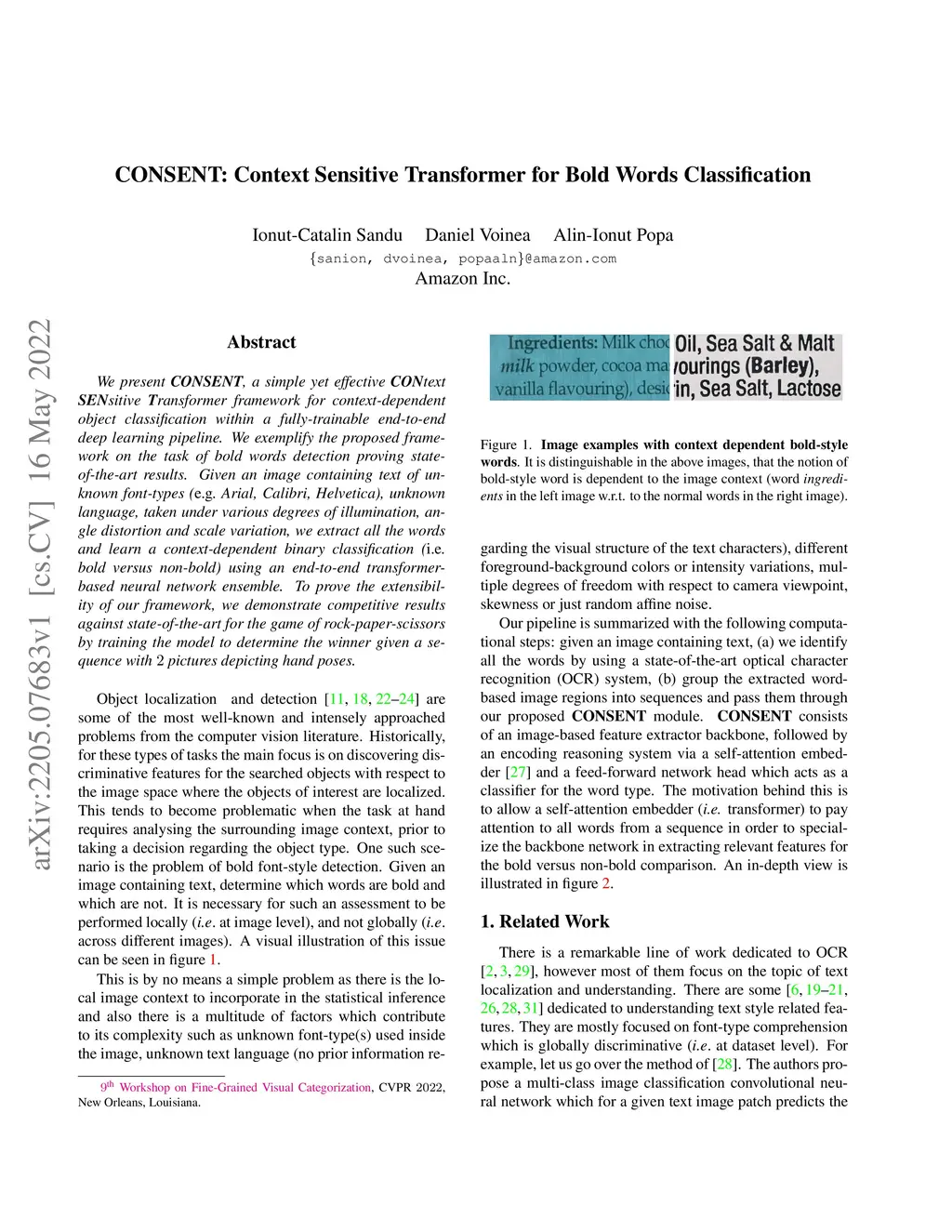 We present CONSENT, a simple yet effective CONtext SENsitive Transformer framework for context-dependent object classification within a fully-trainable end-to-end deep learning pipeline. We exemplify the proposed framework on the task of bold words detection proving state-of-the-art results. Given an image containing text of unknown font-types (e.g. Arial, Calibri, Helvetica), unknown language, taken under various degrees of illumination, angle distortion and scale variation, we extract all the words and learn a context-dependent binary classification (i.e. bold versus non-bold) using an end-to-end transformer-based neural network ensemble. To prove the extensibility of our framework, we demonstrate competitive results against state-of-the-art for the game of rock-paper-scissors by training the model to determine the winner given a sequence with pictures depicting hand poses.