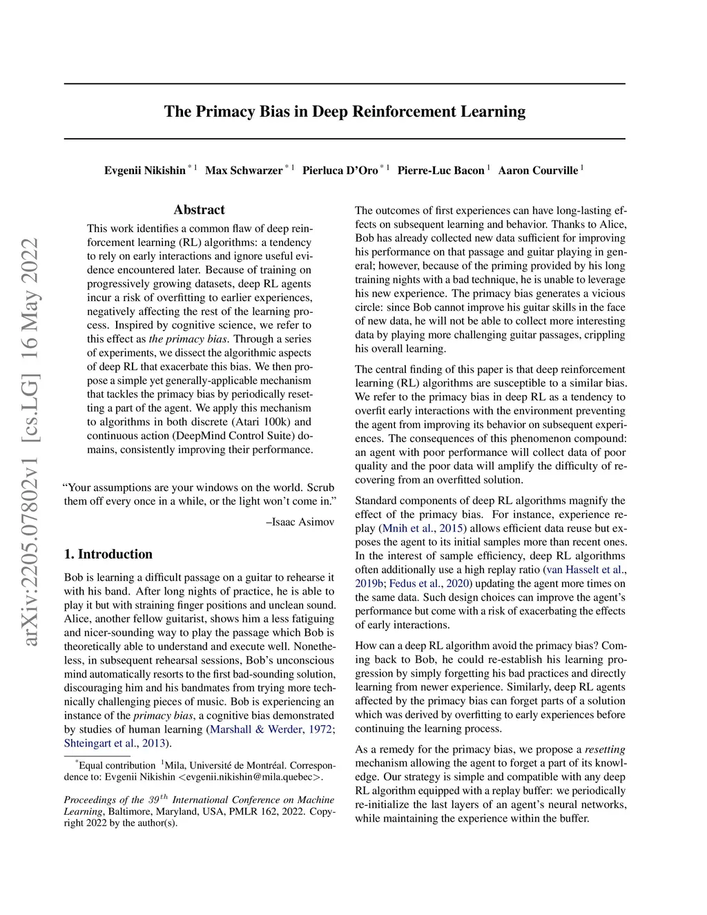 The Primacy Bias in Deep Reinforcement Learning