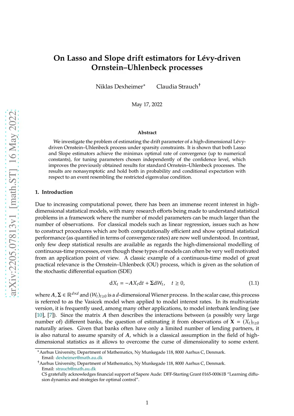We investigate the problem of estimating the drift parameter of a high-dimensional L\évy-driven Ornstein--Uhlenbeck process under sparsity constraints. It is shown that both Lasso and Slope estimators achieve the minimax optimal rate of convergence (up to numerical constants), for tuning parameters chosen independently of the confidence level, which improves the previously obtained results for standard Ornstein--Uhlenbeck processes. The results are nonasymptotic and hold both in probability and conditional expectation with respect to an event resembling the restricted eigenvalue condition.