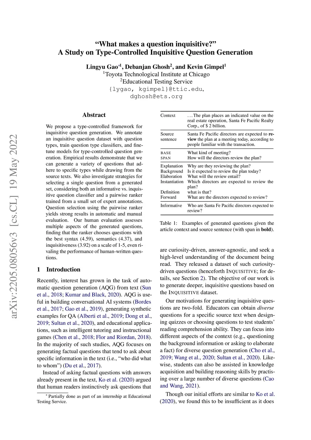 Inquisitive Question Generation