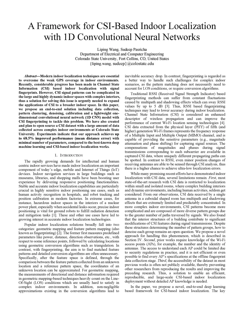 A Framework for CSI-Based Indoor Localization with 1D Convolutional