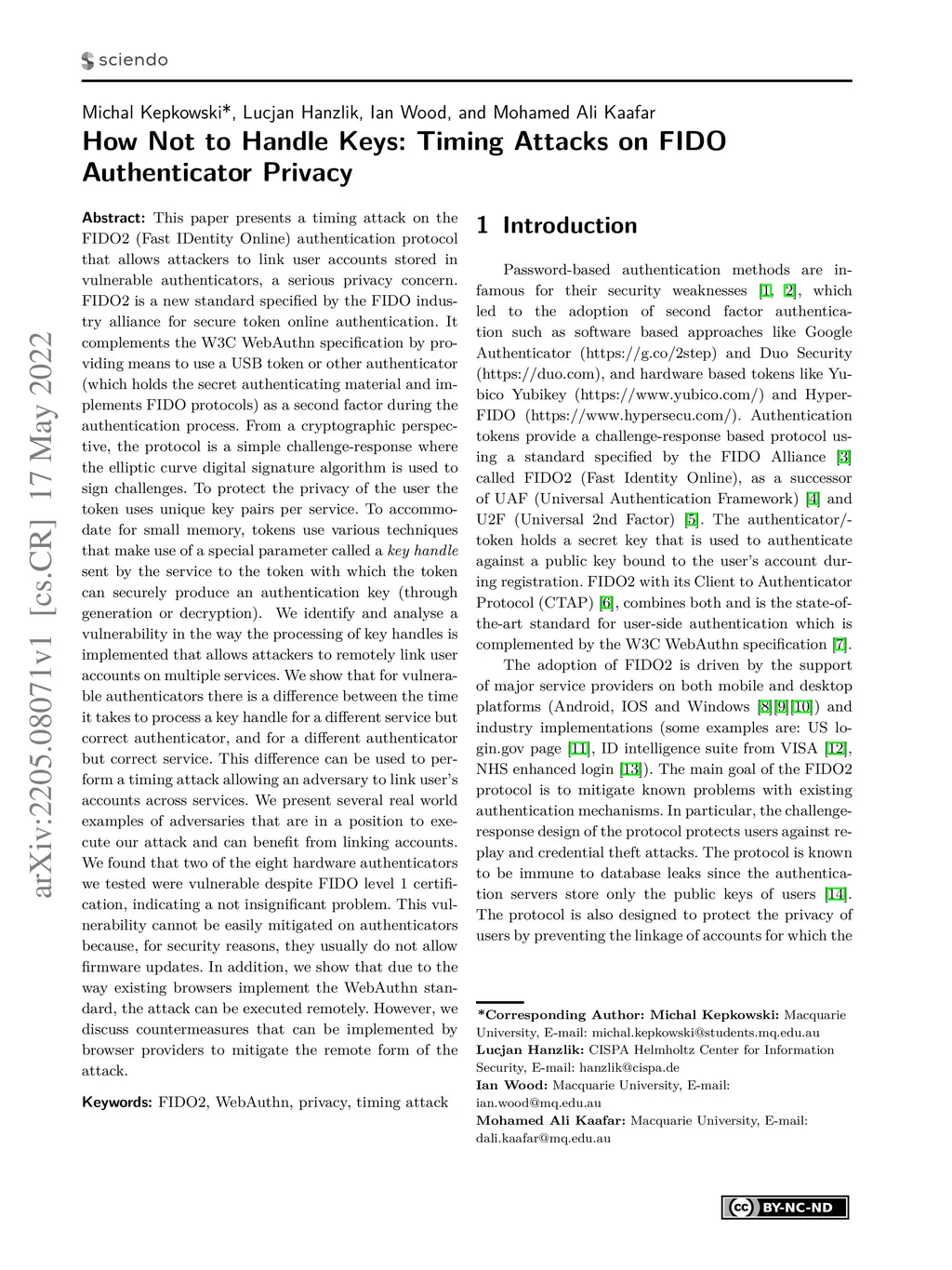 How Not to Handle Keys: Timing Attacks on FIDO Authenticator Privacy