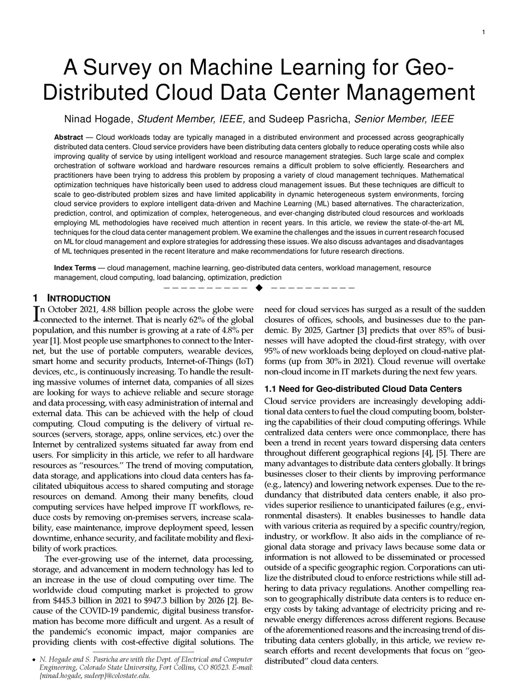 A Survey on Machine Learning for Geo-Distributed Cloud Data Center