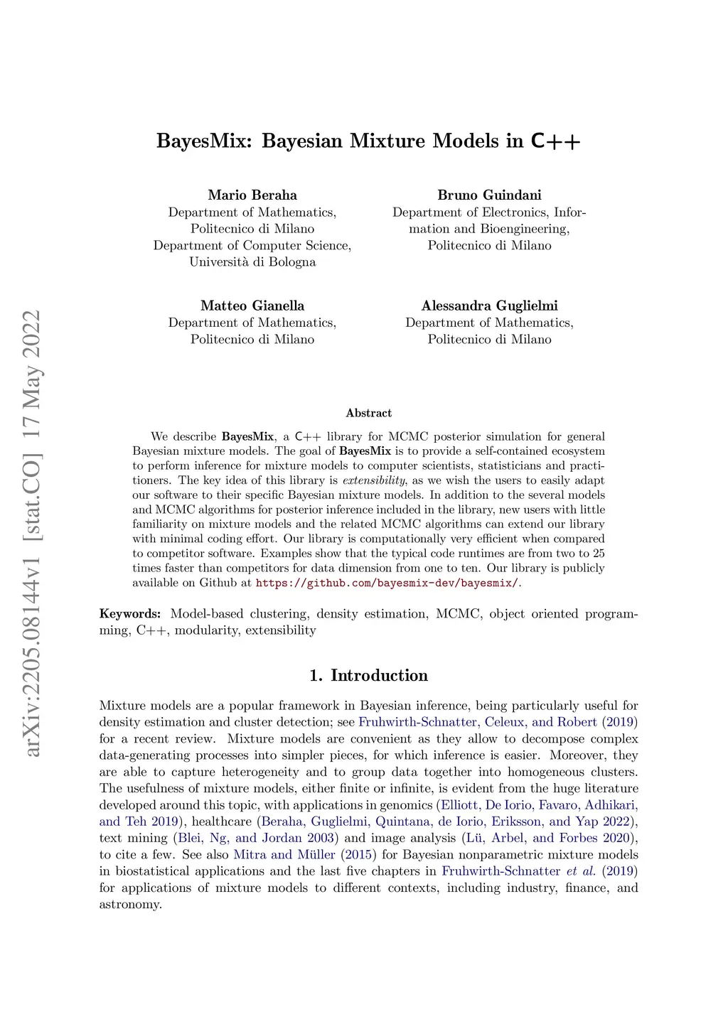 We describe BayesMix, a C++ library for MCMC posterior simulation for general Bayesian mixture models. The goal of BayesMix is to provide a self-contained ecosystem to perform inference for mixture models to computer scientists, statisticians and practitioners. The key idea of this library is extensibility, as we wish the users to easily adapt our software to their specific Bayesian mixture models. In addition to the several models and MCMC algorithms for posterior inference included in the library, new users with little familiarity on mixture models and the related MCMC algorithms can extend our library with minimal coding effort. Our library is computationally very efficient when compared to competitor software. Examples show that the typical code runtimes are from two to 25 times faster than competitors for data dimension from one to ten. Our library is publicly available on Github at https://github.com/bayesmix-dev/bayesmix/.