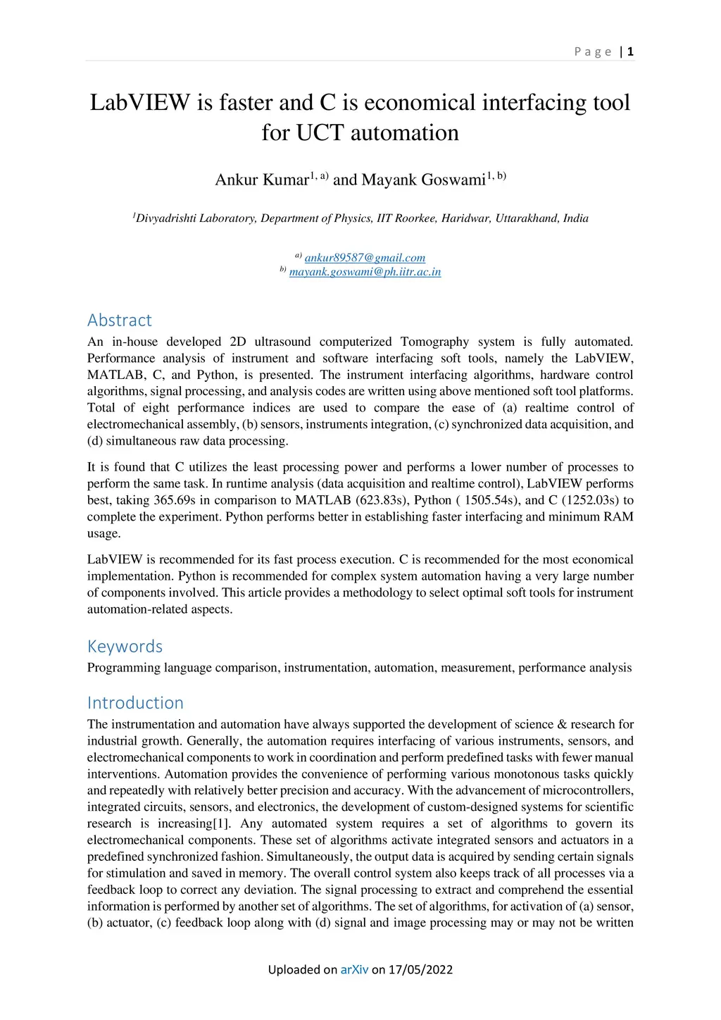 LabVIEW is faster and C is economical interfacing tool for UCT