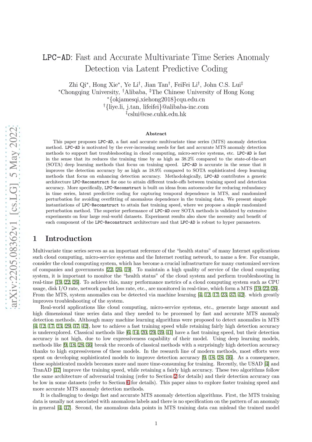LPC-AD: Fast and Accurate Multivariate Time Series Anomaly Detection via