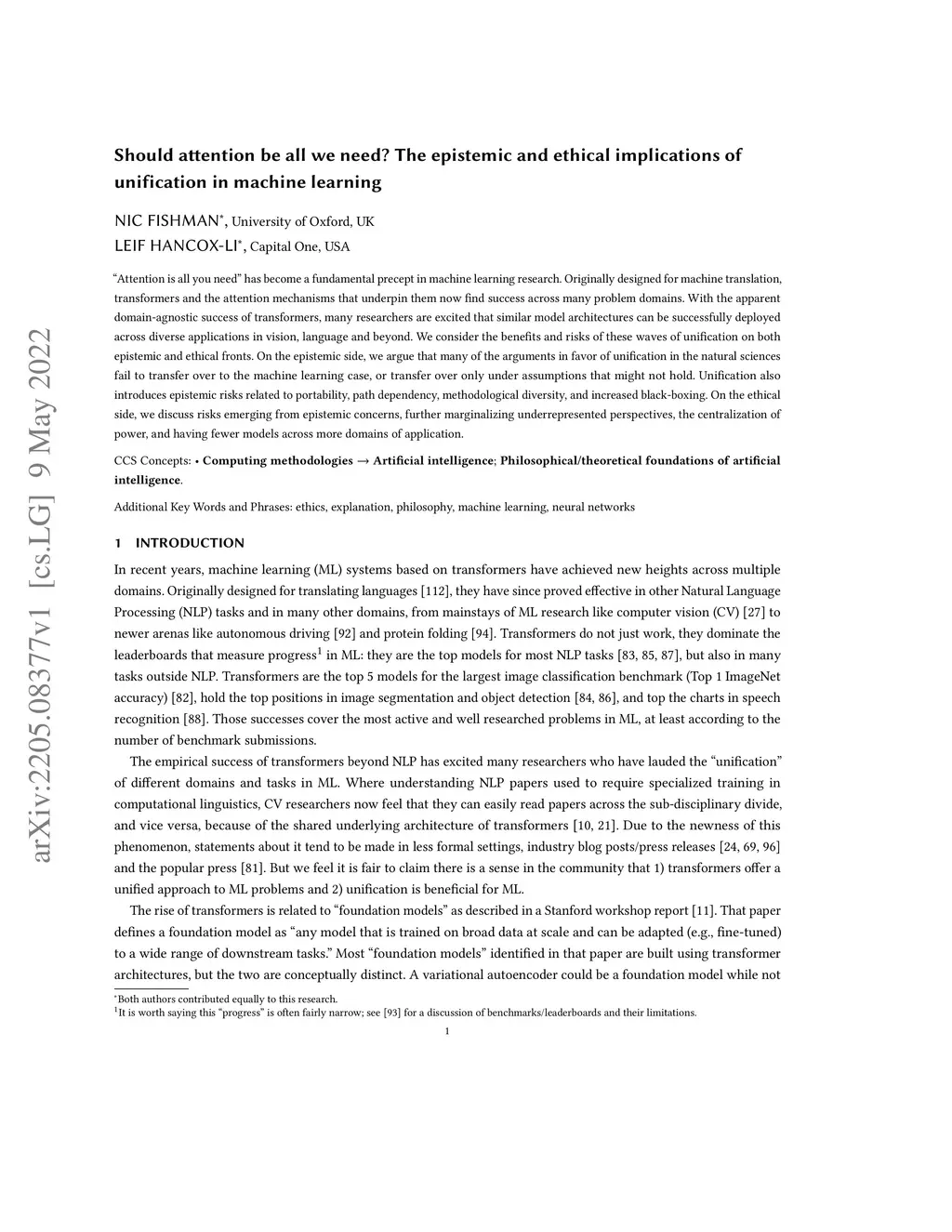 "Attention is all you need" has become a fundamental precept in machine learning research. Originally designed for machine translation, transformers and the attention mechanisms that underpin them now find success across many problem domains. With the apparent domain-agnostic success of transformers, many researchers are excited that similar model architectures can be successfully deployed across diverse applications in vision, language and beyond. We consider the benefits and risks of these waves of unification on both epistemic and ethical fronts. On the epistemic side, we argue that many of the arguments in favor of unification in the natural sciences fail to transfer over to the machine learning case, or transfer over only under assumptions that might not hold. Unification also introduces epistemic risks related to portability, path dependency, methodological diversity, and increased black-boxing. On the ethical side, we discuss risks emerging from epistemic concerns, further marginalizing underrepresented perspectives, the centralization of power, and having fewer models across more domains of application
