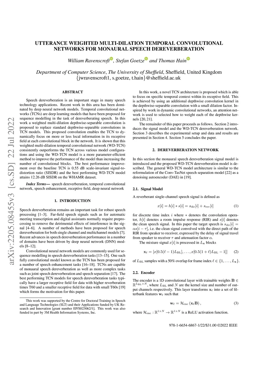 Utterance Weighted Multi-Dilation Temporal Convolutional Networks for