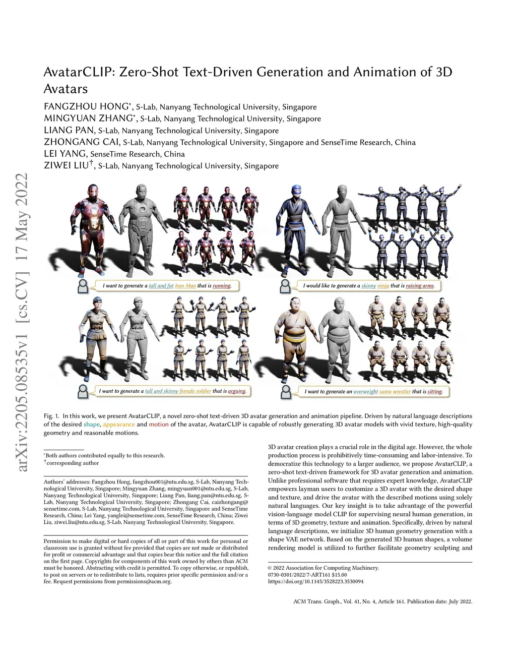 AvatarCLIP: Zero-Shot Text-Driven Generation and Animation of 3D Avatars
