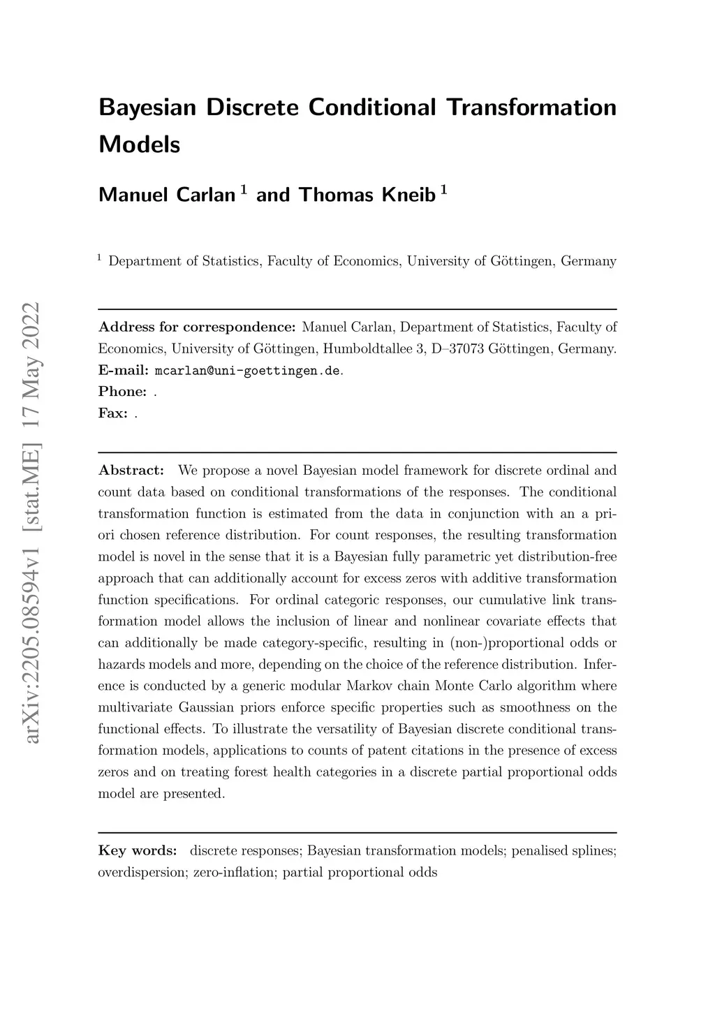 We propose a novel Bayesian model framework for discrete ordinal and count data based on conditional transformations of the responses. The conditional transformation function is estimated from the data in conjunction with an a priori chosen reference distribution. For count responses, the resulting transformation model is novel in the sense that it is a Bayesian fully parametric yet distribution-free approach that can additionally account for excess zeros with additive transformation function specifications. For ordinal categoric responses, our cumulative link transformation model allows the inclusion of linear and nonlinear covariate effects that can additionally be made category-specific, resulting in (non-)proportional odds or hazards models and more, depending on the choice of the reference distribution. Inference is conducted by a generic modular Markov chain Monte Carlo algorithm where multivariate Gaussian priors enforce specific properties such as smoothness on the functional effects. To illustrate the versatility of Bayesian discrete conditional transformation models, applications to counts of patent citations in the presence of excess zeros and on treating forest health categories in a discrete partial proportional odds model are presented.