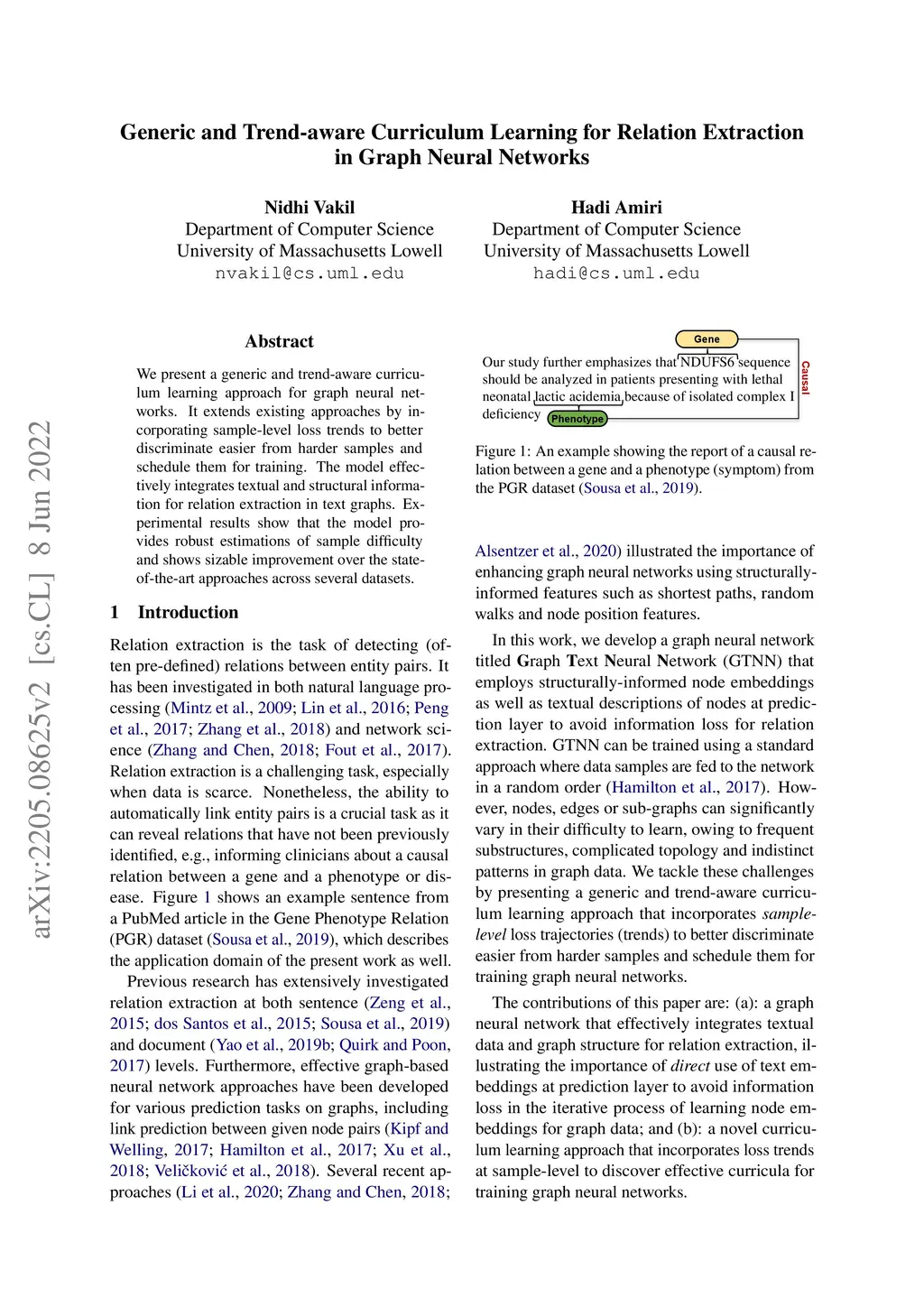 We present a generic and trend-aware curriculum learning approach for graph neural networks. It extends existing approaches by incorporating sample-level loss trends to better discriminate easier from harder samples and schedule them for training. The model effectively integrates textual and structural information for relation extraction in text graphs. Experimental results show that the model provides robust estimations of sample difficulty and shows sizable improvement over the state-of-the-art approaches across several datasets.