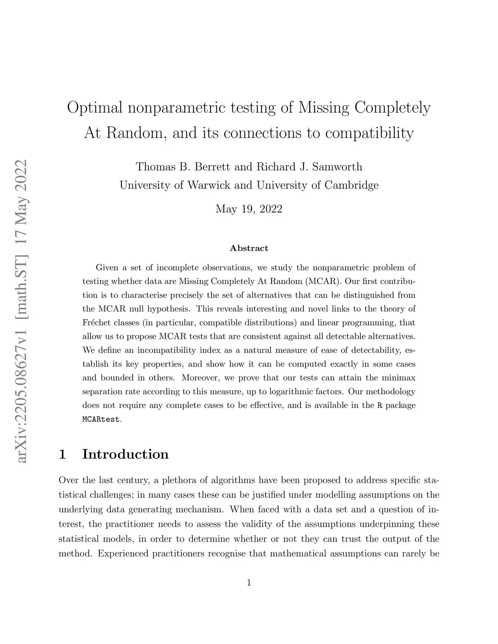Given a set of incomplete observations, we study the nonparametric problem of testing whether data are Missing Completely At Random (MCAR). Our first contribution is to characterise precisely the set of alternatives that can be distinguished from the MCAR null hypothesis. This reveals interesting and novel links to the theory of Fr\échet classes (in particular, compatible distributions) and linear programming, that allow us to propose MCAR tests that are consistent against all detectable alternatives. We define an incompatibility index as a natural measure of ease of detectability, establish its key properties, and show how it can be computed exactly in some cases and bounded in others. Moreover, we prove that our tests can attain the minimax separation rate according to this measure, up to logarithmic factors. Our methodology does not require any complete cases to be effective, and is available in the R package MCARtest.