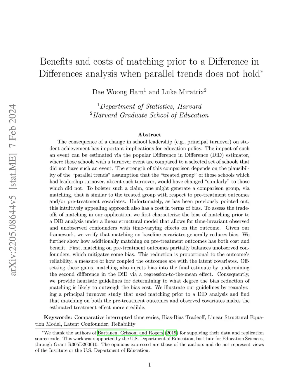 Benefits and costs of matching prior to a Difference in Differences