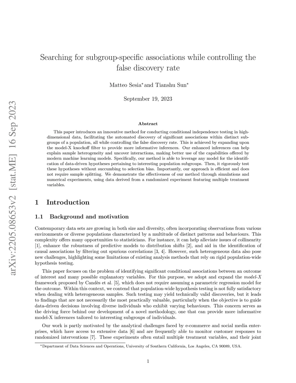 This paper introduces an innovative method for conducting conditional independence testing in high-dimensional data, facilitating the automated discovery of significant associations within distinct subgroups of a population, all while controlling the false discovery rate. This is achieved by expanding upon the model-X knockoff filter to provide more informative inferences. Our enhanced inferences can help explain sample heterogeneity and uncover interactions, making better use of the capabilities offered by modern machine learning models. Specifically, our method is able to leverage any model for the identification of data-driven hypotheses pertaining to interesting population subgroups. Then, it rigorously test these hypotheses without succumbing to selection bias. Importantly, our approach is efficient and does not require sample splitting. We demonstrate the effectiveness of our method through simulations and numerical experiments, using data derived from a randomized experiment featuring multiple treatment variables.