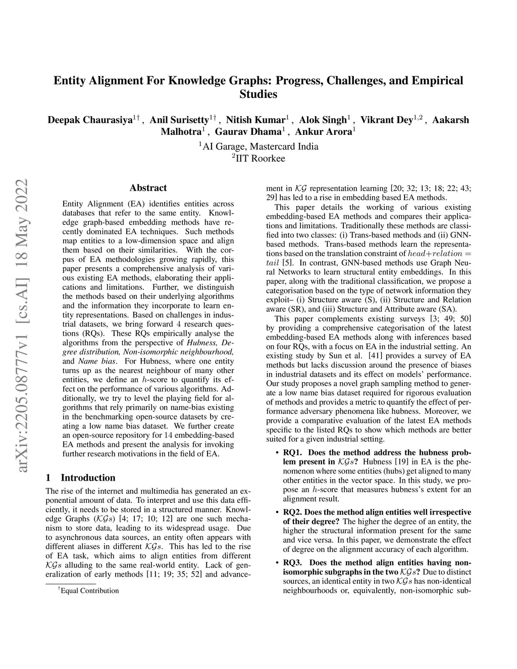 Entity Alignment (EA) identifies entities across databases that refer to the same entity. Knowledge graph-based embedding methods have recently dominated EA techniques. Such methods map entities to a low-dimension space and align them based on their similarities. With the corpus of EA methodologies growing rapidly, this paper presents a comprehensive analysis of various existing EA methods, elaborating their applications and limitations. Further, we distinguish the methods based on their underlying algorithms and the information they incorporate to learn entity representations. Based on challenges in industrial datasets, we bring forward research questions (RQs). These RQs empirically analyse the algorithms from the perspective of \textit{Hubness, Degree distribution, Non-isomorphic neighbourhood,} and \textit{Name bias}. For Hubness, where one entity turns up as the nearest neighbour of many other entities, we define an -score to quantify its effect on the performance of various algorithms. Additionally, we try to level the playing field for algorithms that rely primarily on name-bias existing in the benchmarking open-source datasets by creating a low name bias dataset. We further create an open-source repository for embedding-based EA methods and present the analysis for invoking further research motivations in the field of EA.