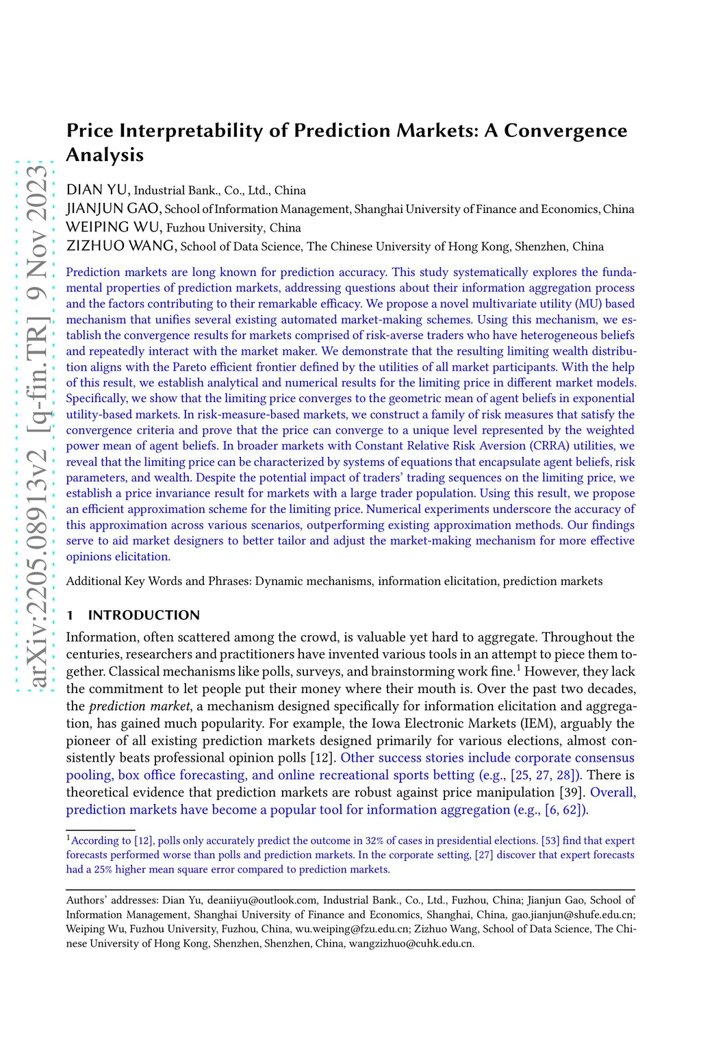 Prediction markets are long known for prediction accuracy. This study systematically explores the fundamental properties of prediction markets, addressing questions about their information aggregation process and the factors contributing to their remarkable efficacy. We propose a novel multivariate utility (MU) based mechanism that unifies several existing automated market-making schemes. Using this mechanism, we establish the convergence results for markets comprised of risk-averse traders who have heterogeneous beliefs and repeatedly interact with the market maker. We demonstrate that the resulting limiting wealth distribution aligns with the Pareto efficient frontier defined by the utilities of all market participants. With the help of this result, we establish analytical and numerical results for the limiting price in different market models. Specifically, we show that the limiting price converges to the geometric mean of agent beliefs in exponential utility-based markets. In risk-measure-based markets, we construct a family of risk measures that satisfy the convergence criteria and prove that the price can converge to a unique level represented by the weighted power mean of agent beliefs. In broader markets with Constant Relative Risk Aversion (CRRA) utilities, we reveal that the limiting price can be characterized by systems of equations that encapsulate agent beliefs, risk parameters, and wealth. Despite the potential impact of traders' trading sequences on the limiting price, we establish a price invariance result for markets with a large trader population. Using this result, we propose an efficient approximation scheme for the limiting price.