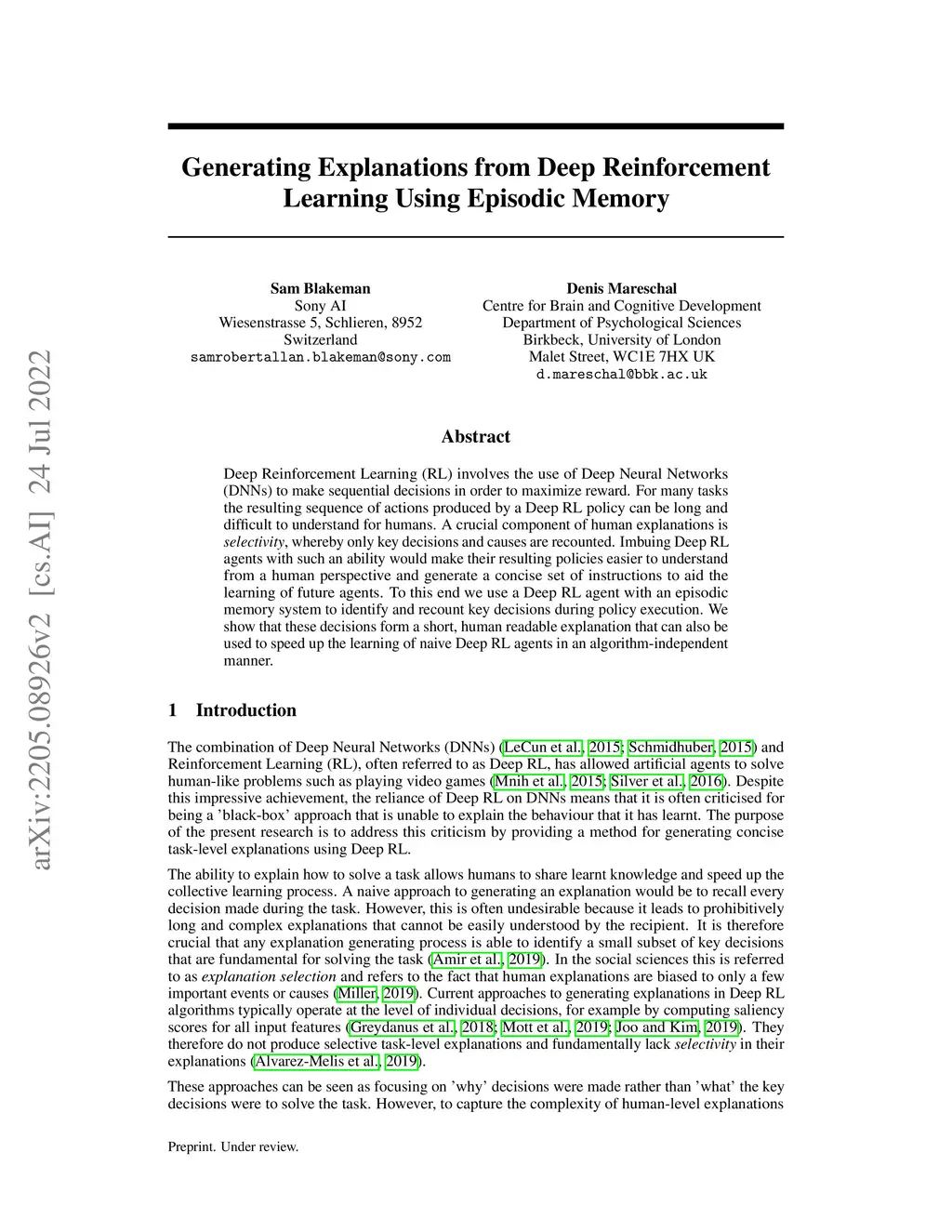 Deep Reinforcement Learning (RL) involves the use of Deep Neural Networks (DNNs) to make sequential decisions in order to maximize reward. For many tasks the resulting sequence of actions produced by a Deep RL policy can be long and difficult to understand for humans. A crucial component of human explanations is selectivity, whereby only key decisions and causes are recounted. Imbuing Deep RL agents with such an ability would make their resulting policies easier to understand from a human perspective and generate a concise set of instructions to aid the learning of future agents. To this end we use a Deep RL agent with an episodic memory system to identify and recount key decisions during policy execution. We show that these decisions form a short, human readable explanation that can also be used to speed up the learning of naive Deep RL agents in an algorithm-independent manner.
