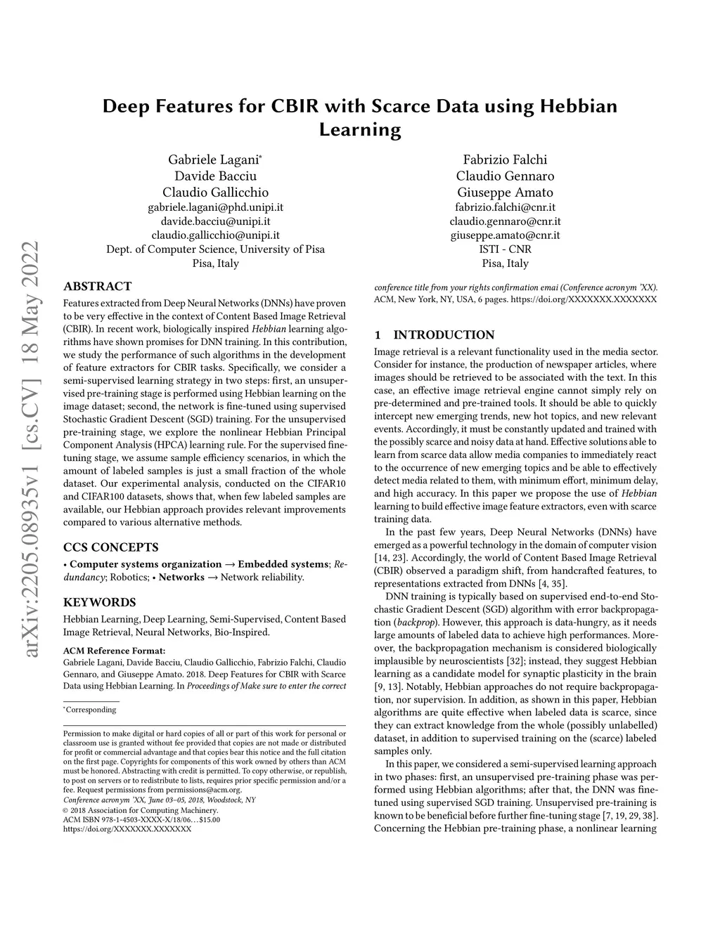 Deep Features for CBIR with Scarce Data using Hebbian Learning