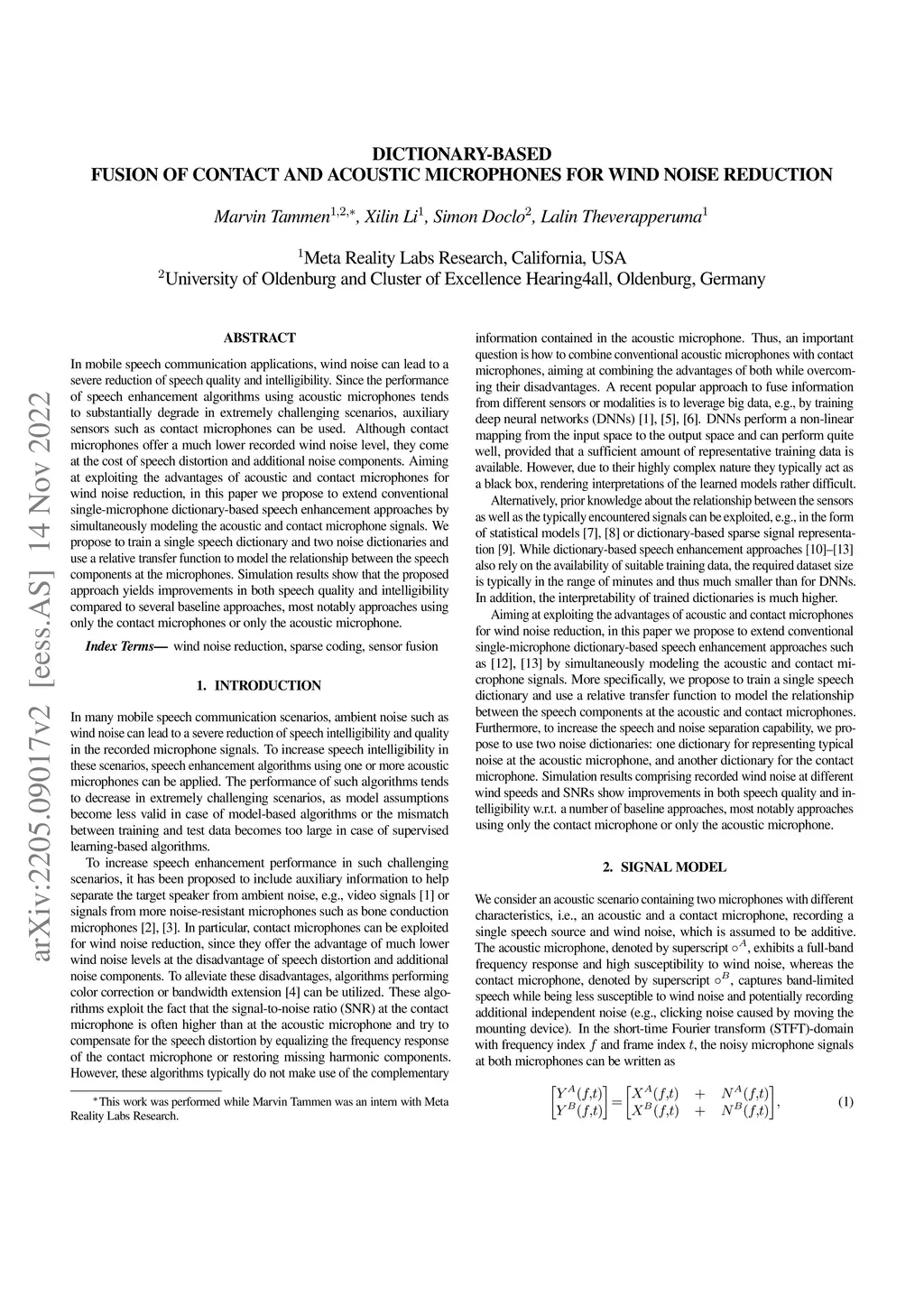 Dictionary-Based Fusion of Contact and Acoustic Microphones for Wind