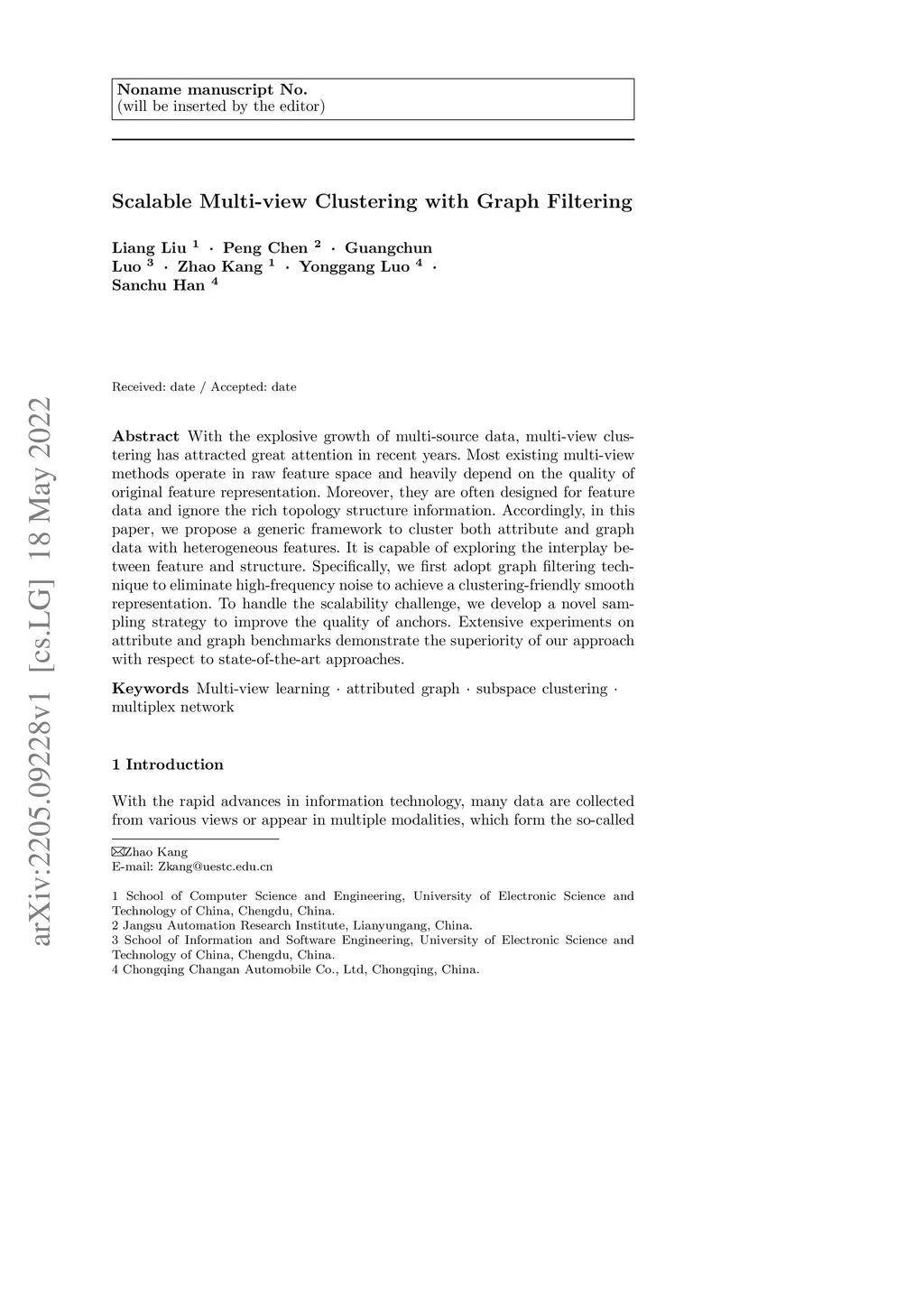 With the explosive growth of multi-source data, multi-view clustering has attracted great attention in recent years. Most existing multi-view methods operate in raw feature space and heavily depend on the quality of original feature representation. Moreover, they are often designed for feature data and ignore the rich topology structure information. Accordingly, in this paper, we propose a generic framework to cluster both attribute and graph data with heterogeneous features. It is capable of exploring the interplay between feature and structure. Specifically, we first adopt graph filtering technique to eliminate high-frequency noise to achieve a clustering-friendly smooth representation. To handle the scalability challenge, we develop a novel sampling strategy to improve the quality of anchors. Extensive experiments on attribute and graph benchmarks demonstrate the superiority of our approach with respect to state-of-the-art approaches.