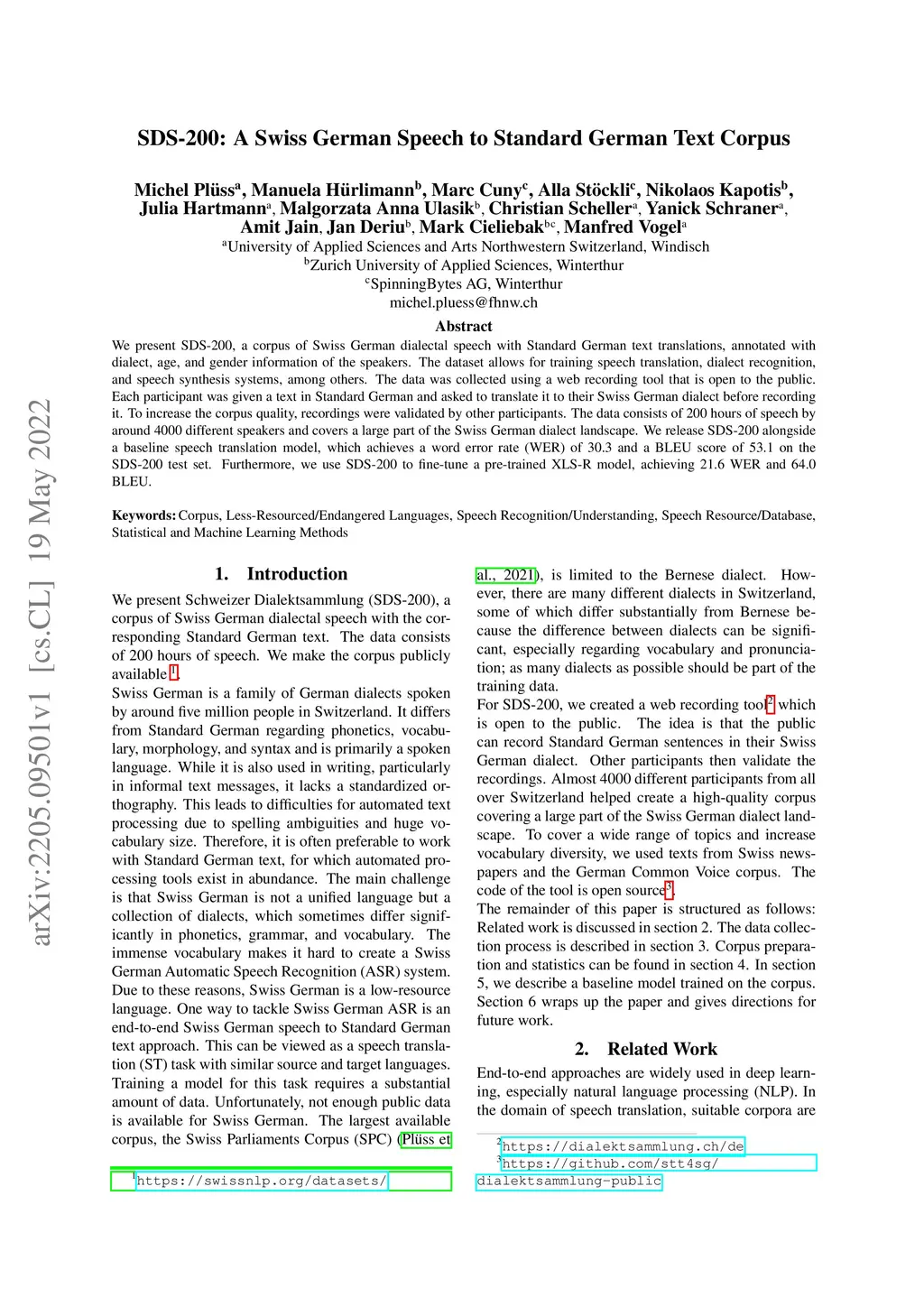 SDS-200: A Swiss German Speech to Standard German Text Corpus