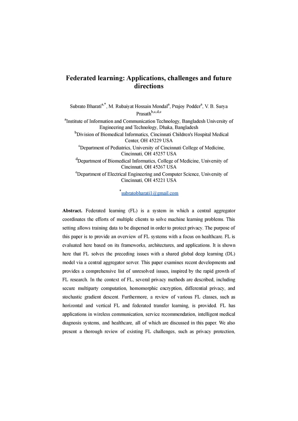 Federated learning (FL) is a system in which a central aggregator coordinates the efforts of multiple clients to solve machine learning problems. This setting allows training data to be dispersed in order to protect privacy. The purpose of this paper is to provide an overview of FL systems with a focus on healthcare. FL is evaluated here based on its frameworks, architectures, and applications. It is shown here that FL solves the preceding issues with a shared global deep learning (DL) model via a central aggregator server. This paper examines recent developments and provides a comprehensive list of unresolved issues, inspired by the rapid growth of FL research. In the context of FL, several privacy methods are described, including secure multiparty computation, homomorphic encryption, differential privacy, and stochastic gradient descent. Furthermore, a review of various FL classes, such as horizontal and vertical FL and federated transfer learning, is provided. FL has applications in wireless communication, service recommendation, intelligent medical diagnosis systems, and healthcare, all of which are discussed in this paper. We also present a thorough review of existing FL challenges, such as privacy protection, communication cost, system heterogeneity, and unreliable model upload, followed by future research directions.