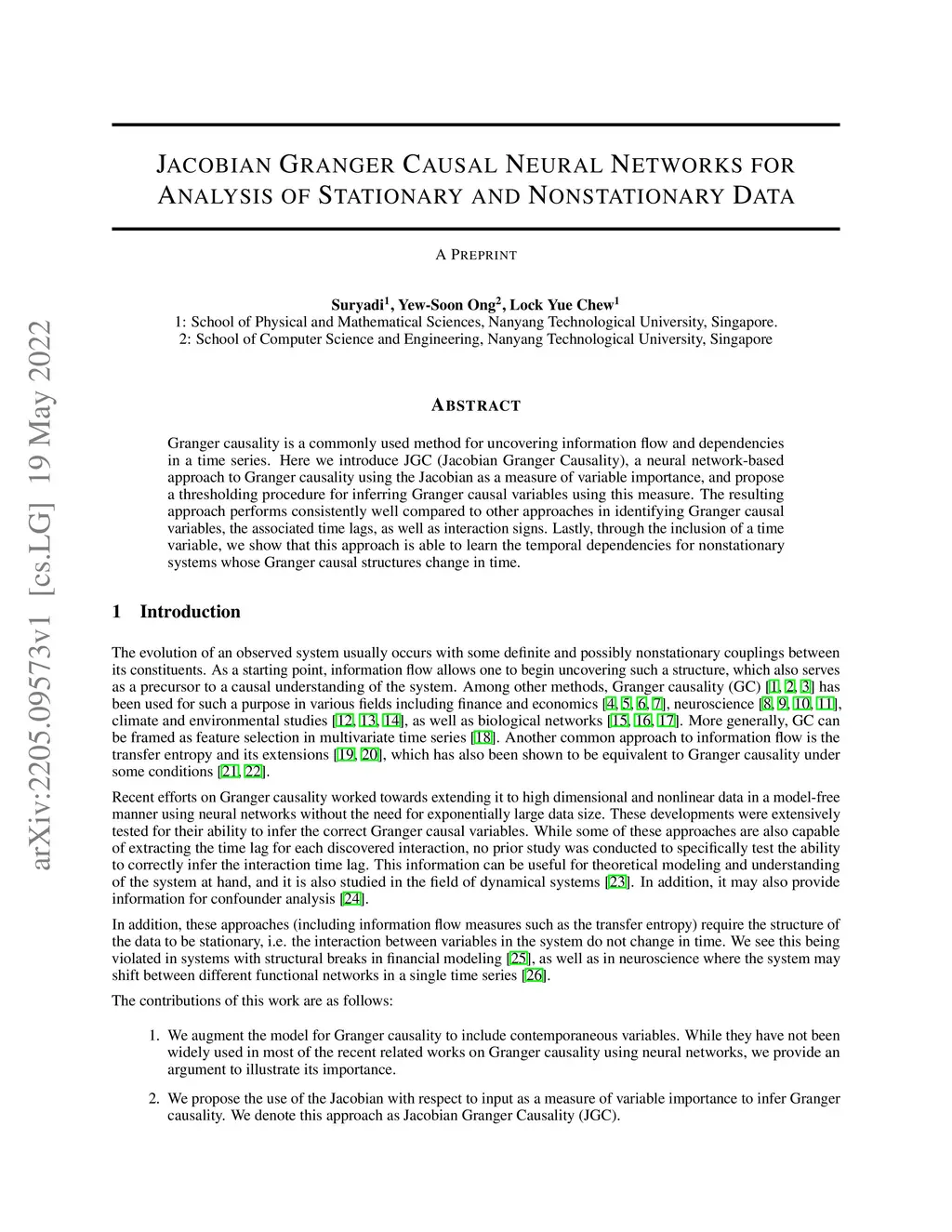 Jacobian Granger Causal Neural Networks for Analysis of Stationary and