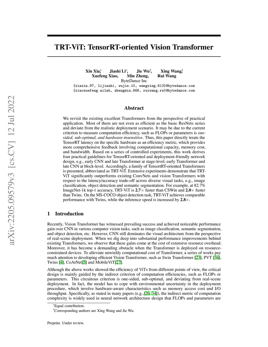TRT-ViT: TensorRT-oriented Vision Transformer