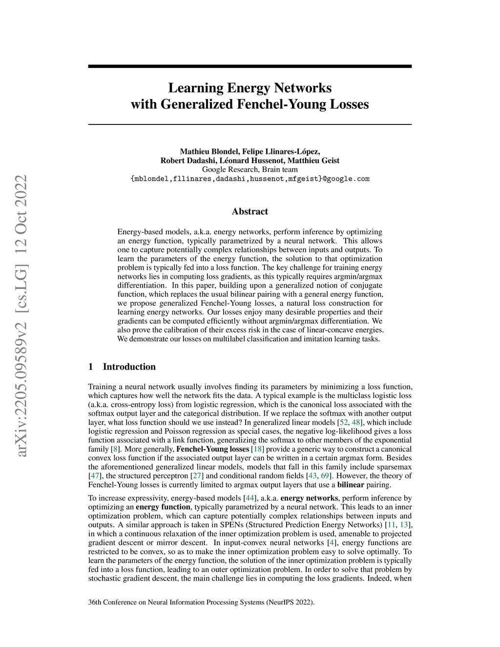 Learning Energy Networks with Generalized Fenchel-Young Losses
