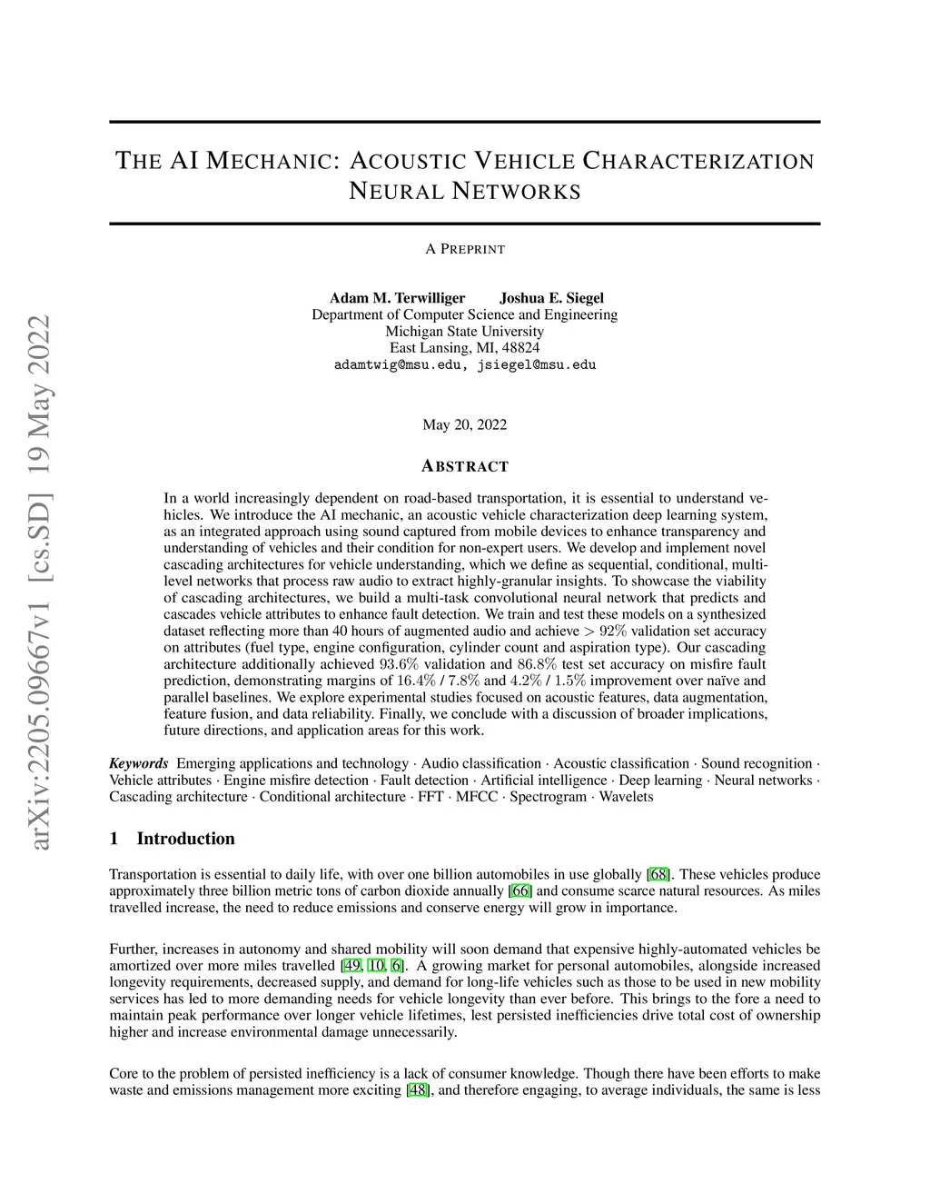 The AI Mechanic: Acoustic Vehicle Characterization Neural Networks