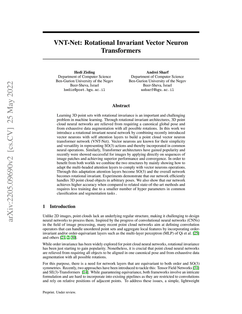 VNT-Net: Rotational Invariant Vector Neuron Transformers