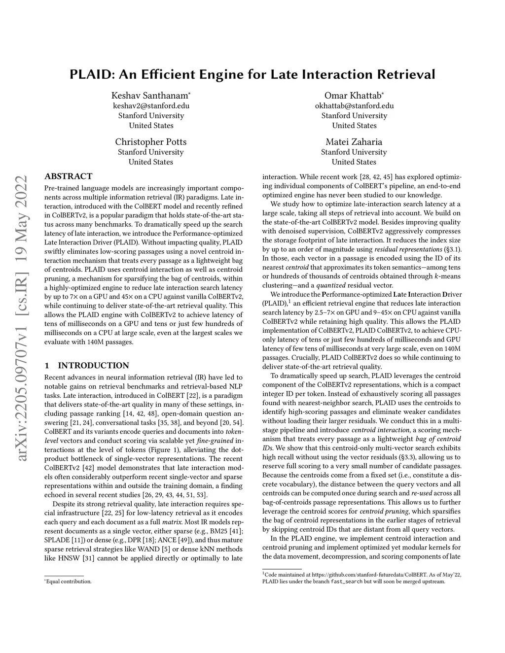 PLAID: An Efficient Engine for Late Interaction Retrieval