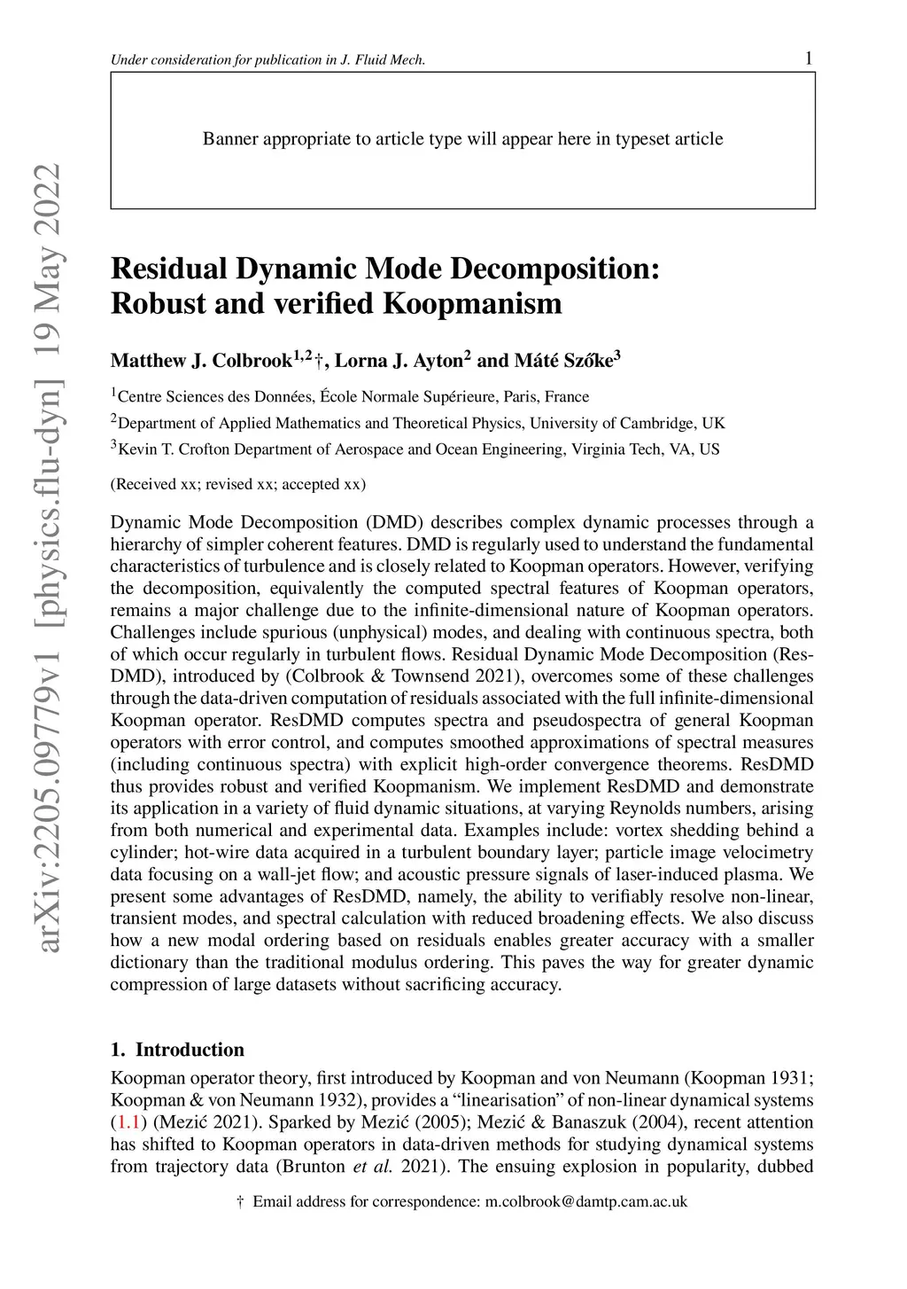 Dynamic Mode Decomposition (DMD) describes complex dynamic processes through a hierarchy of simpler coherent features. DMD is regularly used to understand the fundamental characteristics of turbulence and is closely related to Koopman operators. However, verifying the decomposition, equivalently the computed spectral features of Koopman operators, remains a major challenge due to the infinite-dimensional nature of Koopman operators. Challenges include spurious (unphysical) modes, and dealing with continuous spectra, both of which occur regularly in turbulent flows. Residual Dynamic Mode Decomposition (ResDMD), introduced by (Colbrook & Townsend 2021), overcomes some of these challenges through the data-driven computation of residuals associated with the full infinite-dimensional Koopman operator. ResDMD computes spectra and pseudospectra of general Koopman operators with error control, and computes smoothed approximations of spectral measures (including continuous spectra) with explicit high-order convergence theorems. ResDMD thus provides robust and verified Koopmanism. We implement ResDMD and demonstrate its application in a variety of fluid dynamic situations, at varying Reynolds numbers, arising from both numerical and experimental data. Examples include: vortex shedding behind a cylinder; hot-wire data acquired in a turbulent boundary layer; particle image velocimetry data focusing on a wall-jet flow; and acoustic pressure signals of laser-induced plasma. We present some advantages of ResDMD, namely, the ability to verifiably resolve non-linear, transient modes, and spectral calculation with reduced broadening effects. We also discuss how a new modal ordering based on residuals enables greater accuracy with a smaller dictionary than the traditional modulus ordering. This paves the way for greater dynamic compression of large datasets without sacrificing accuracy.