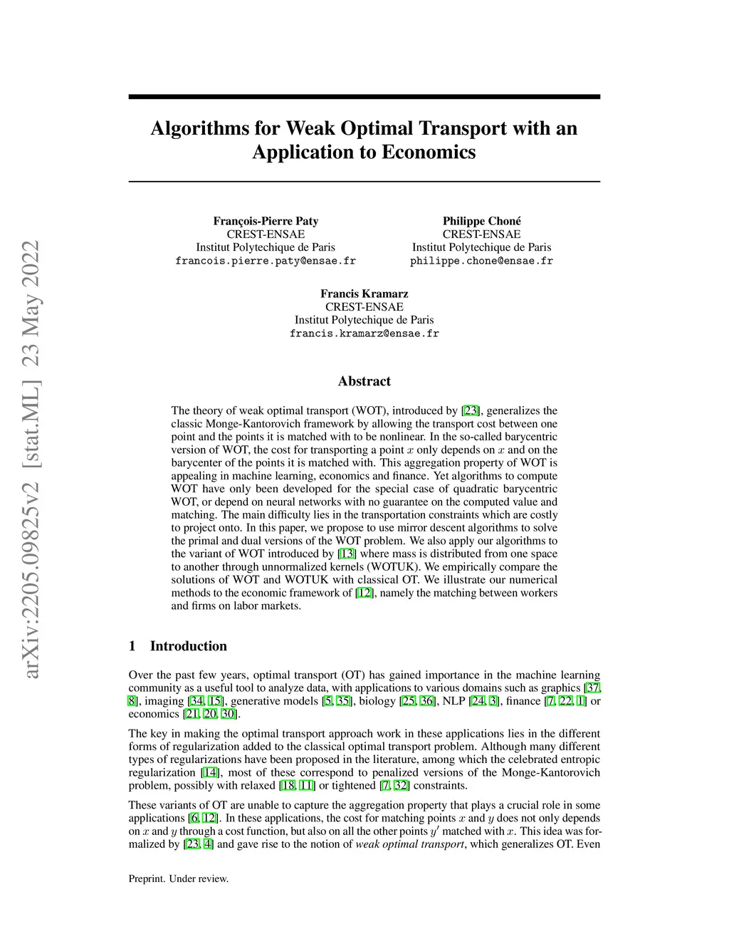 Algorithms for Weak Optimal Transport with an Application to Economics